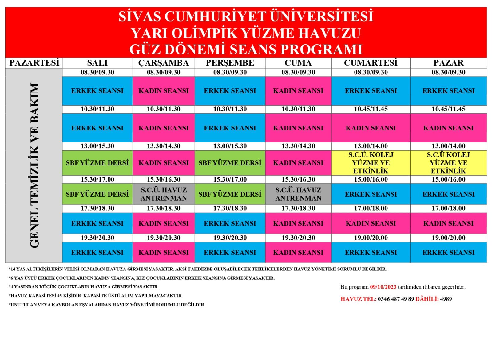 Yarı Olimpik Yüzme Havuzu Seans Programı Duyurular Başlama Tarihi : 6 Ekim 2023 Duyurular Bitiş Tarihi : 13 Ekim 2023
