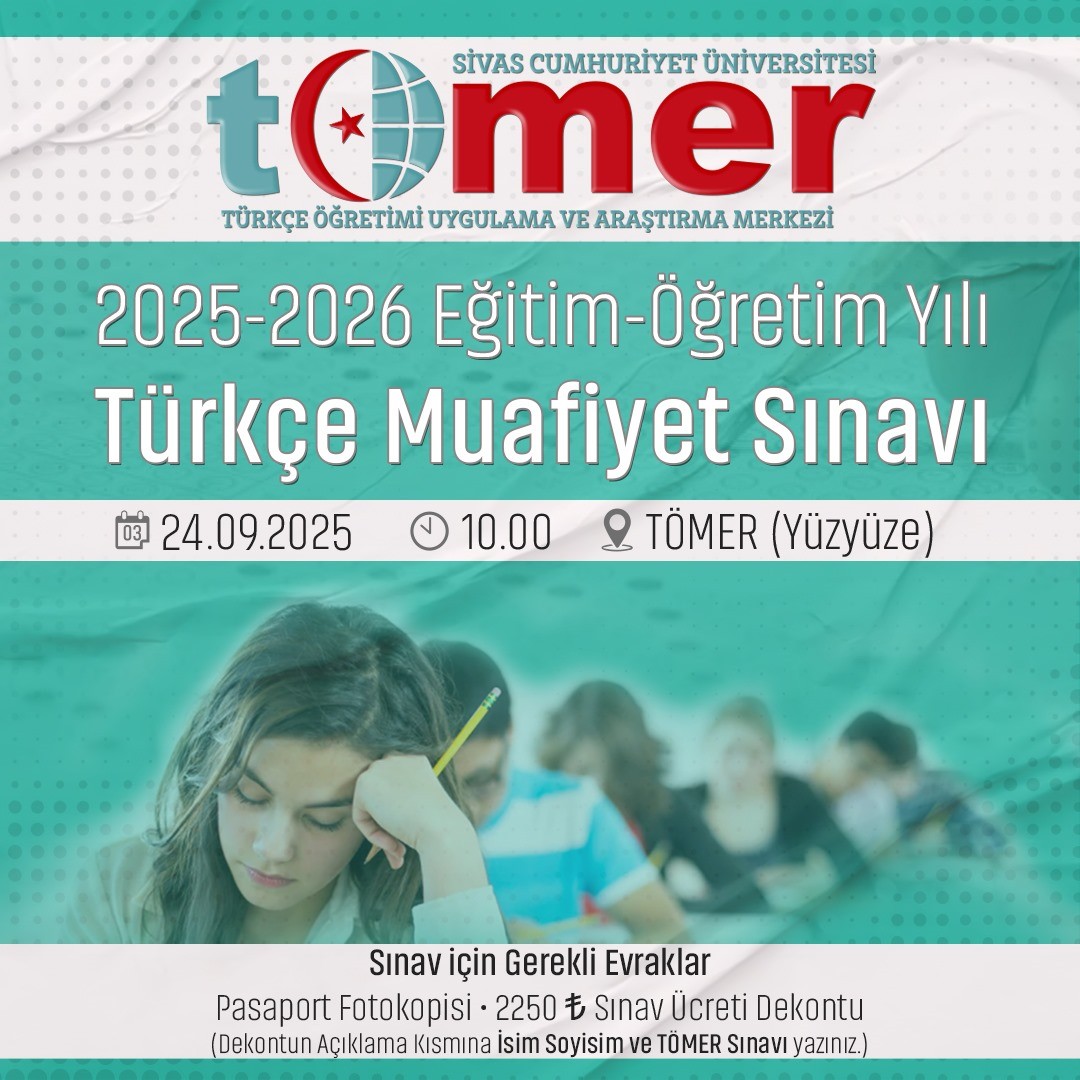 Türkçe Yeterlilik Sınavı Hakkında Duyuru Detaylı Bilgi İçin TIKLAYINIZ. Duyurular Başlama Tarihi : 16 Eylül 2025 Duyurular Bitiş Tarihi : 24 Eylül 2025