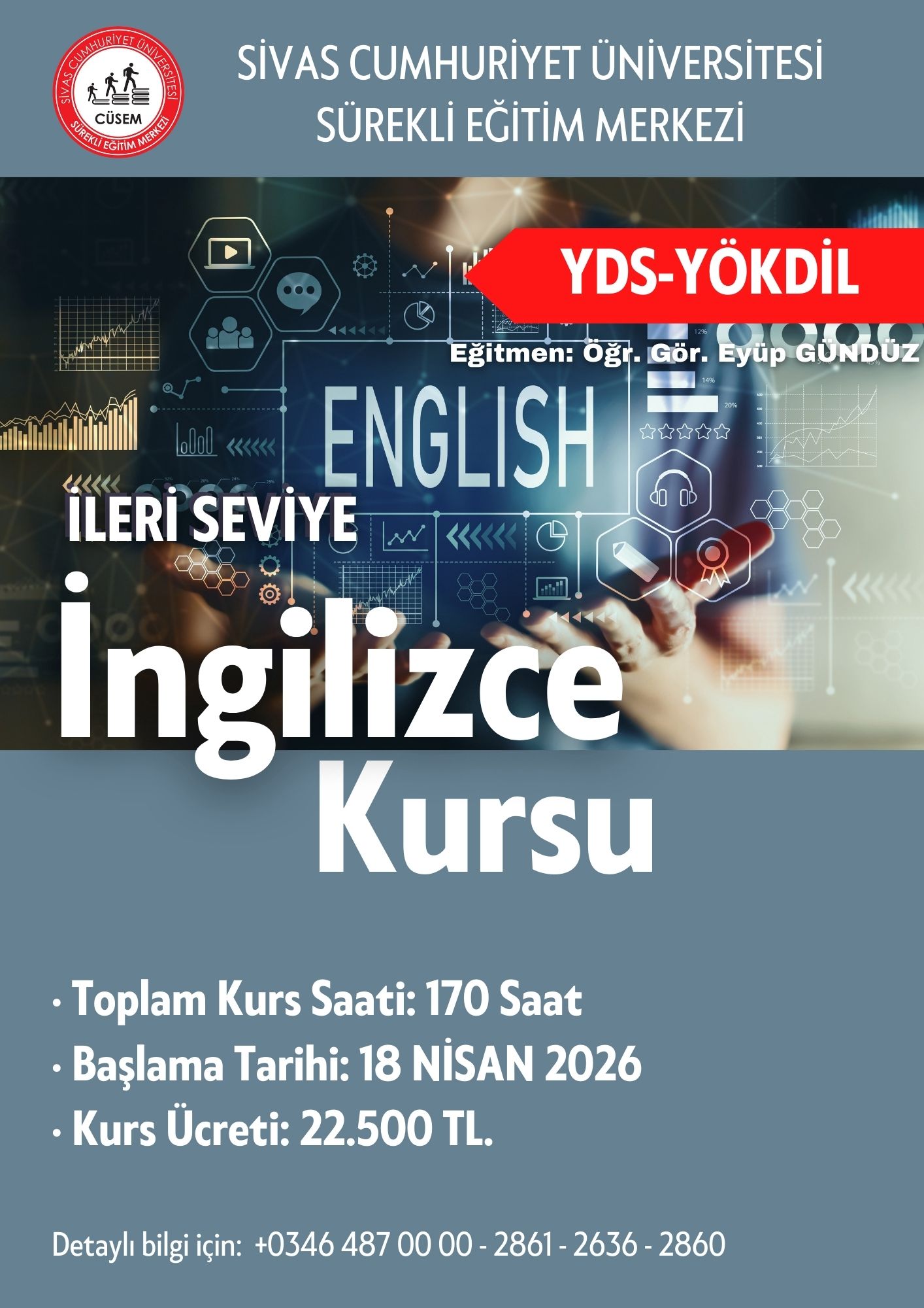 İleri Seviye İngilizce Kursu Duyurular Başlama Tarihi : 25 Mart 2026 Duyurular Bitiş Tarihi : 18 Nisan 2026