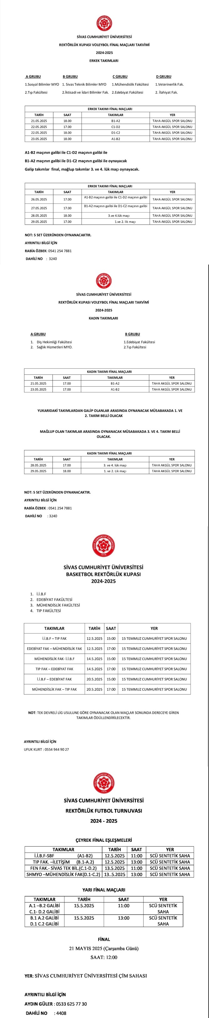 Rektörlük Kupası (Futbol-Basketbol-Voleybol ) (Erkek-Kadın) Müsabaka Takvimleri Haber Tarihi : 12 Mayıs 2025