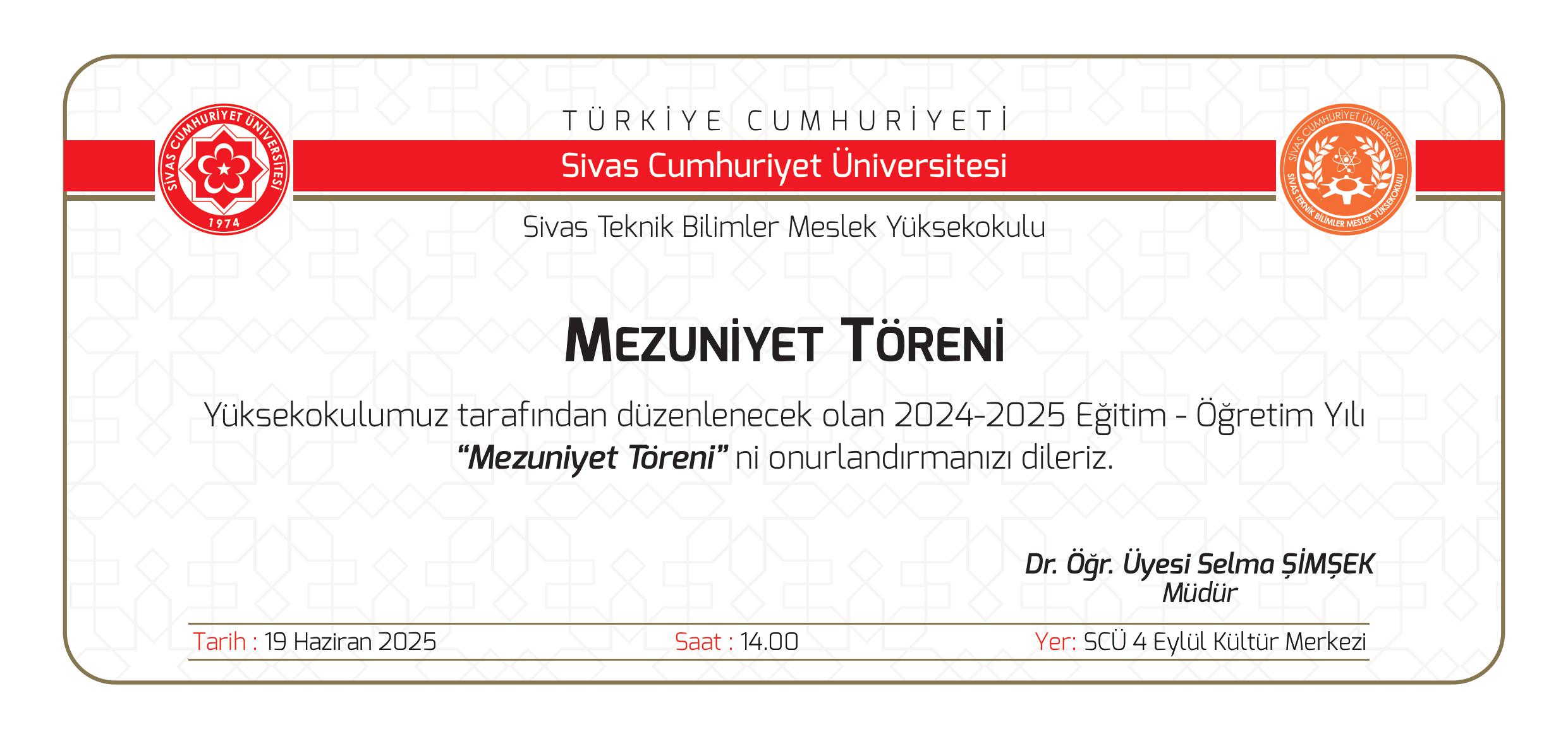 Sivas Teknik Bilimler Meslek Yüksekokulu Mezuniyet Töreni