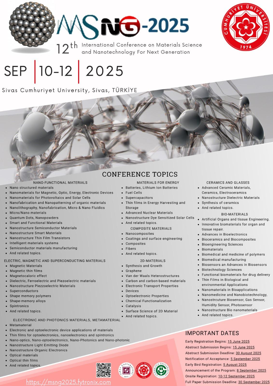 12. Yeni Nesil İçin Malzeme Bilimi ve Nanoteknoloji Uluslararası Konferansı (12. International Conference on Materials Science and Nanotechnology for Next Generation) Kongre sayfasına ulaşmak için TIKLAYINIZ Haber Tarihi : 10 Eylül 2025