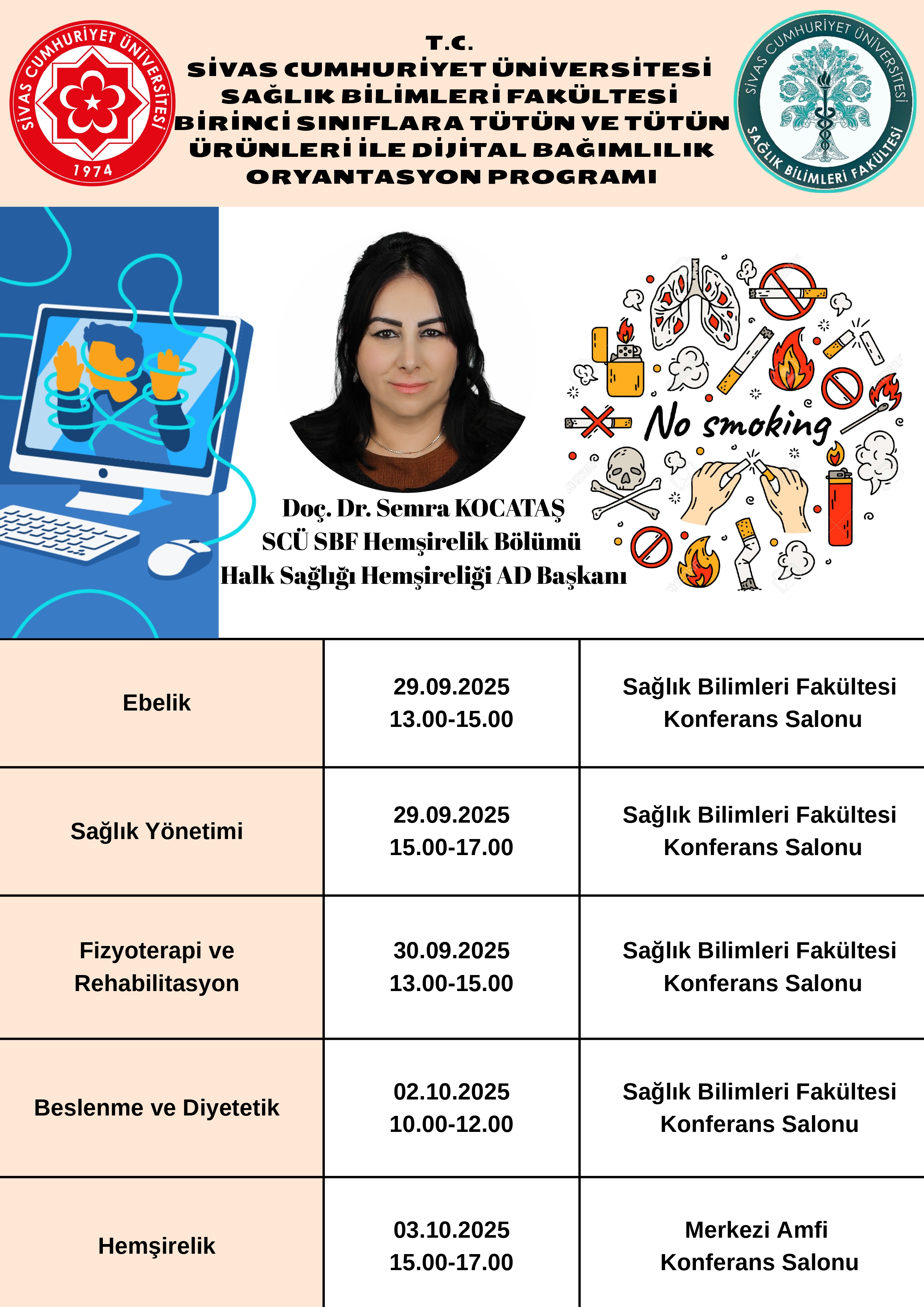 Sağlık Bilimleri Fakültesi Birinci Sınıflara Tütün ve Tütün Ürünleri ile Dijital Bağımlılık Oryantasyon Programı Haber Tarihi : 29 Eylül 2025