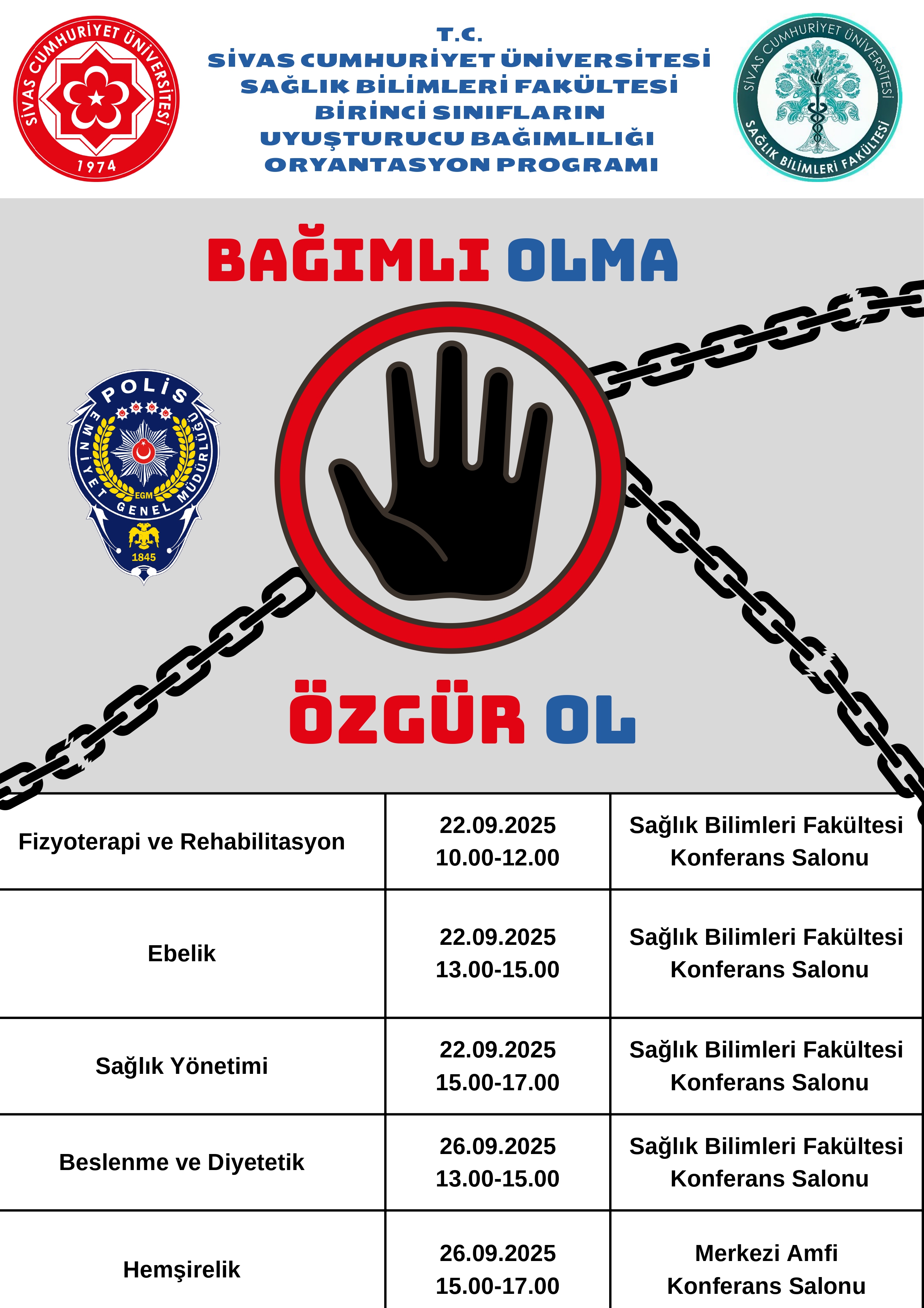 Sağlık Bilimleri Fakültesi Birinci Sınıflara Uyuşturucu Bağımlılığı Oryantasyon Programı Haber Tarihi : 23 Eylül 2025