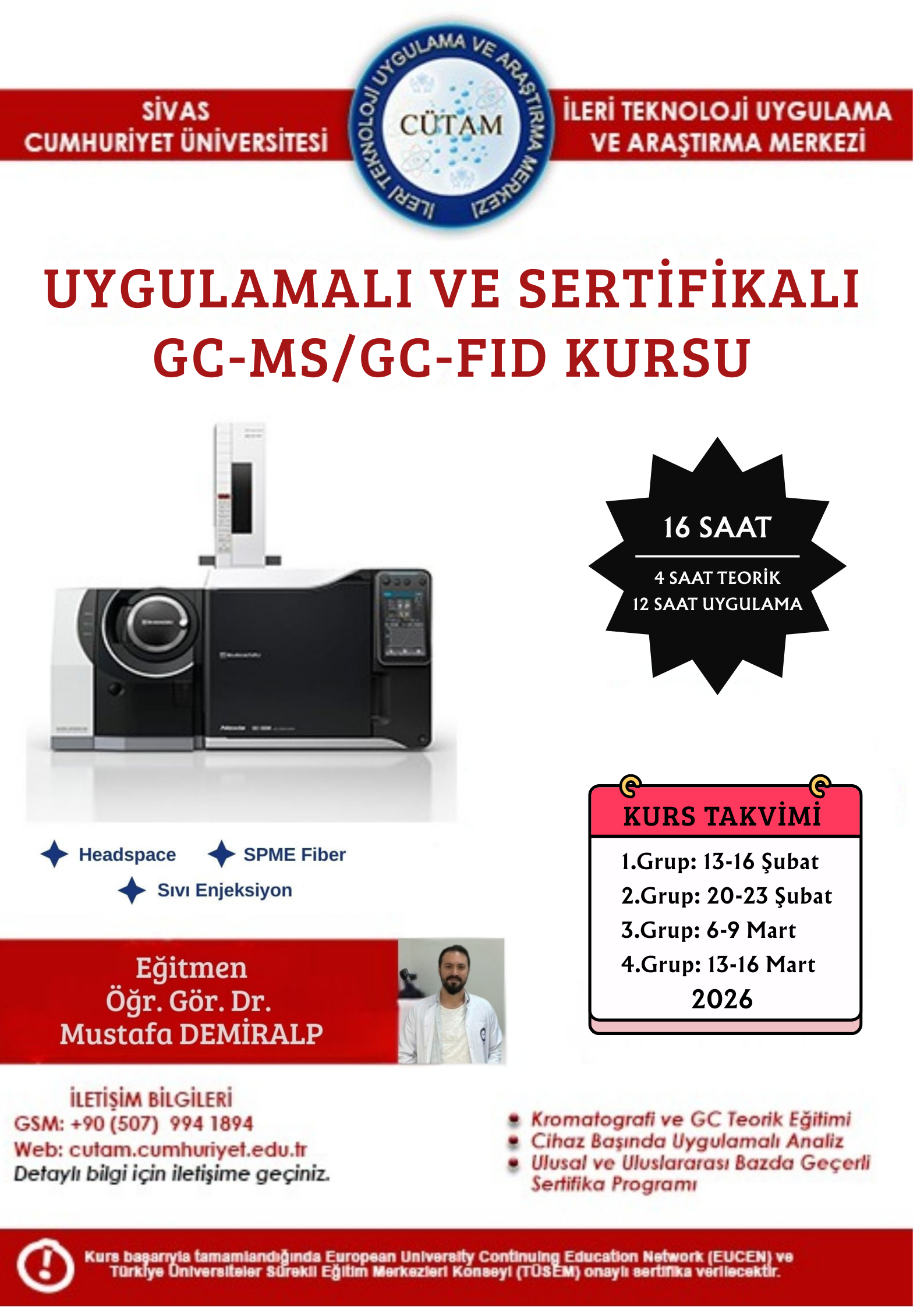 Uygulamalı ve Sertifikalı GC-MS/GC-FID Kursu