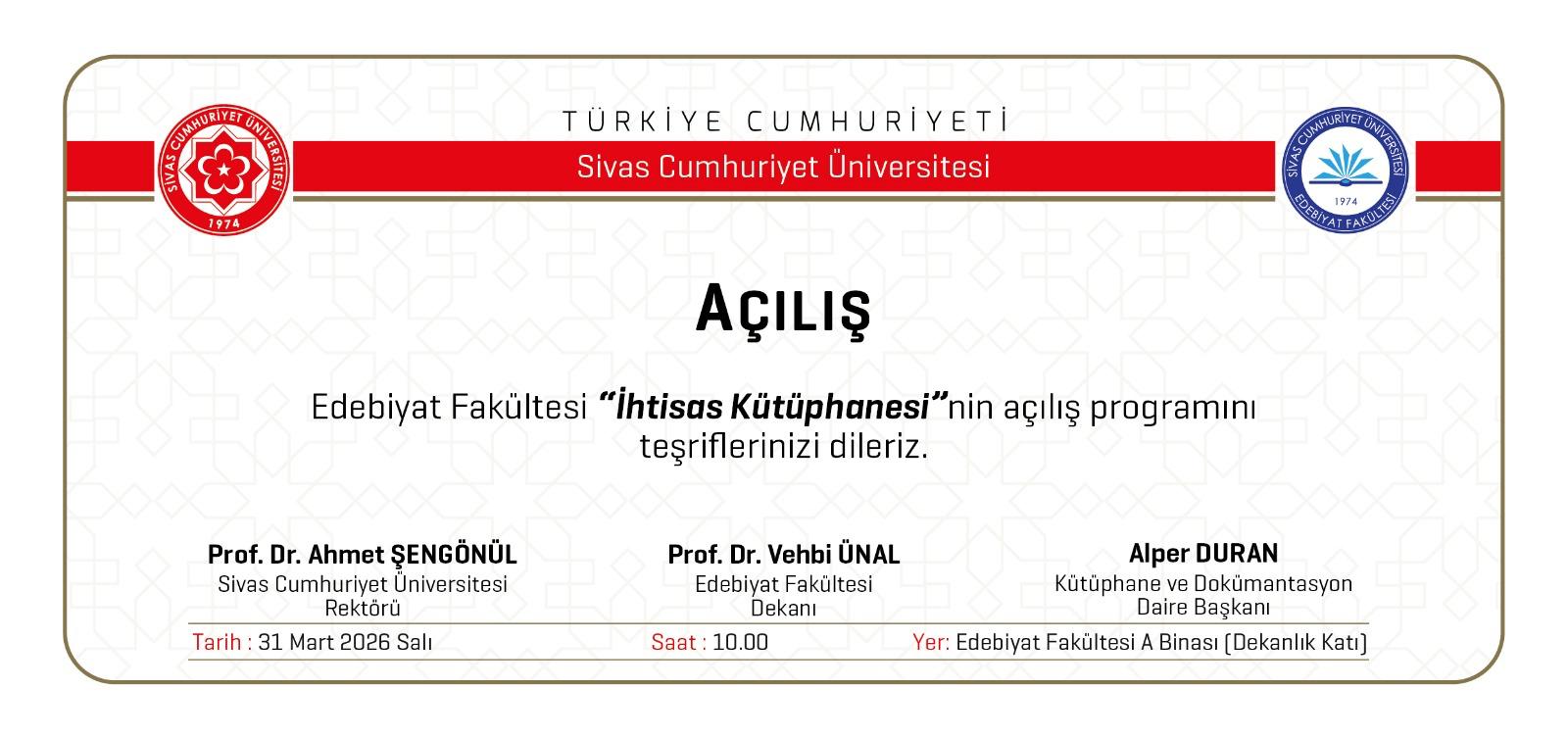 Edebiyat Fakültesi "İhtisas Kütüphanesi" Açılış Programı