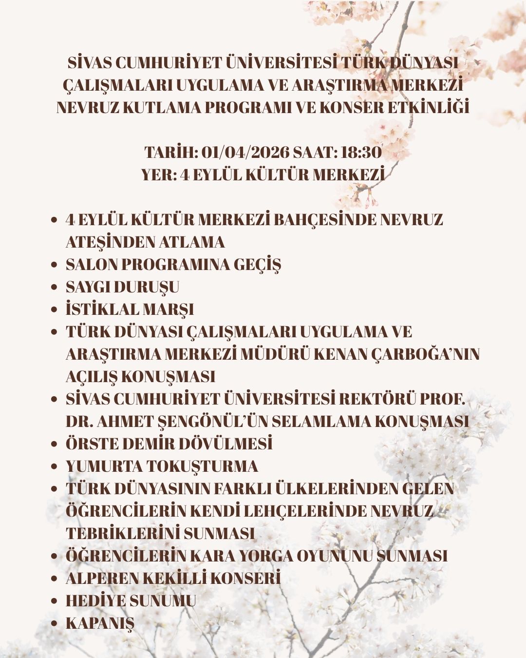 Nevruz Kutlama Programı ve Konser Etkinliği