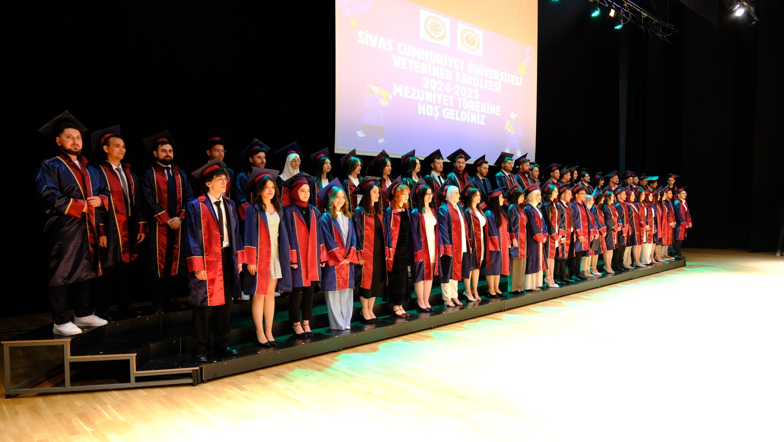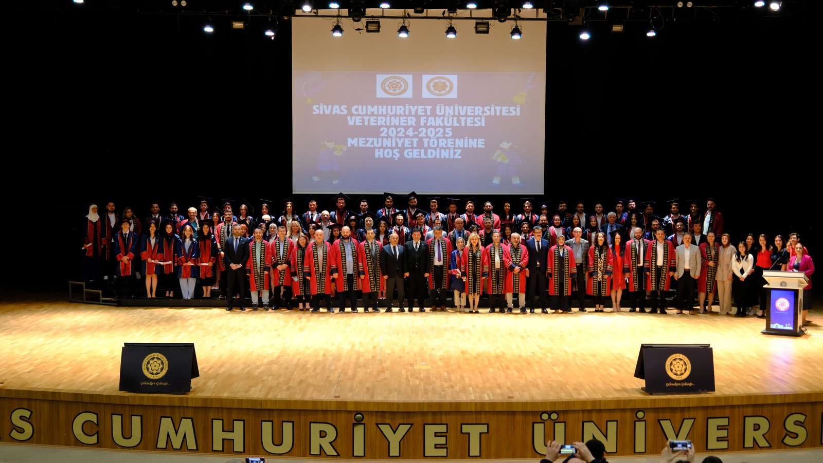 Törene; Veteriner Fakültesi Dekanı Prof. Dr. Barış Atalay Uslu, Sivas İl Tarım ve Orman Müdürü Seyit Yıldız, Sivas Veteriner Odası Oda Başkanı Ahmet Koçak, akademisyenler, öğrenciler ve aileler katıldı. Mezuniyet töreninde öğrencilerimiz diplomalarını alarak yemin etmelerinin ardından Veteriner Hekimliğe ilk adımlarını attı. Törende, ailelerin de katılımıyla duygusal ve çoşkulu anlara şahit olundu.