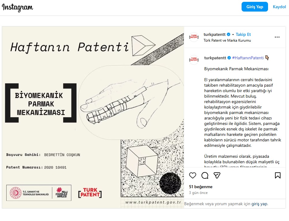 Biyomekanik Parmak Mekanizması Haftanın Patenti Seçildi