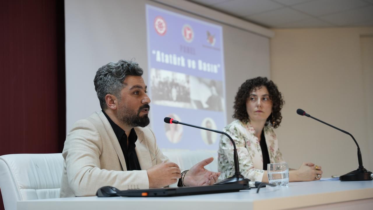 İletişim Fakültesi Gazetecilik Bölümü Dr. Öğretim Üyesi Fırat Yolcu ise “Atatürk’ün Basınla İlişkisi” başlıklı sunumunda, Atatürk’ün basını hem bir iletişim aracı hem de ulusal birliği pekiştiren bir güç olarak değerlendirdiğini ifade etti. Öğretim Üyesi Yolcu, Atatürk’ün farklı dönemlerde basınla kurduğu ilişkiyi tarihsel perspektifle ele aldı ve özellikle Minber Gazetesi örneği üzerinden basına verdiği önemi vurguladı.