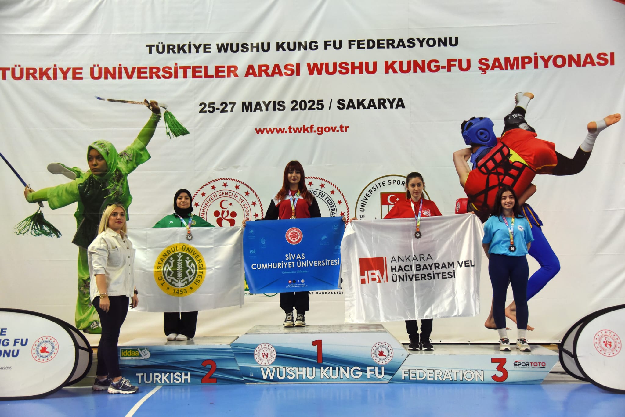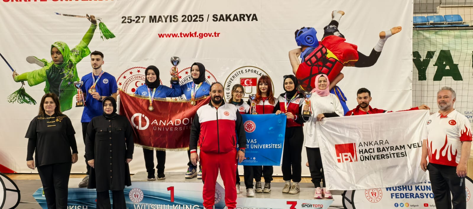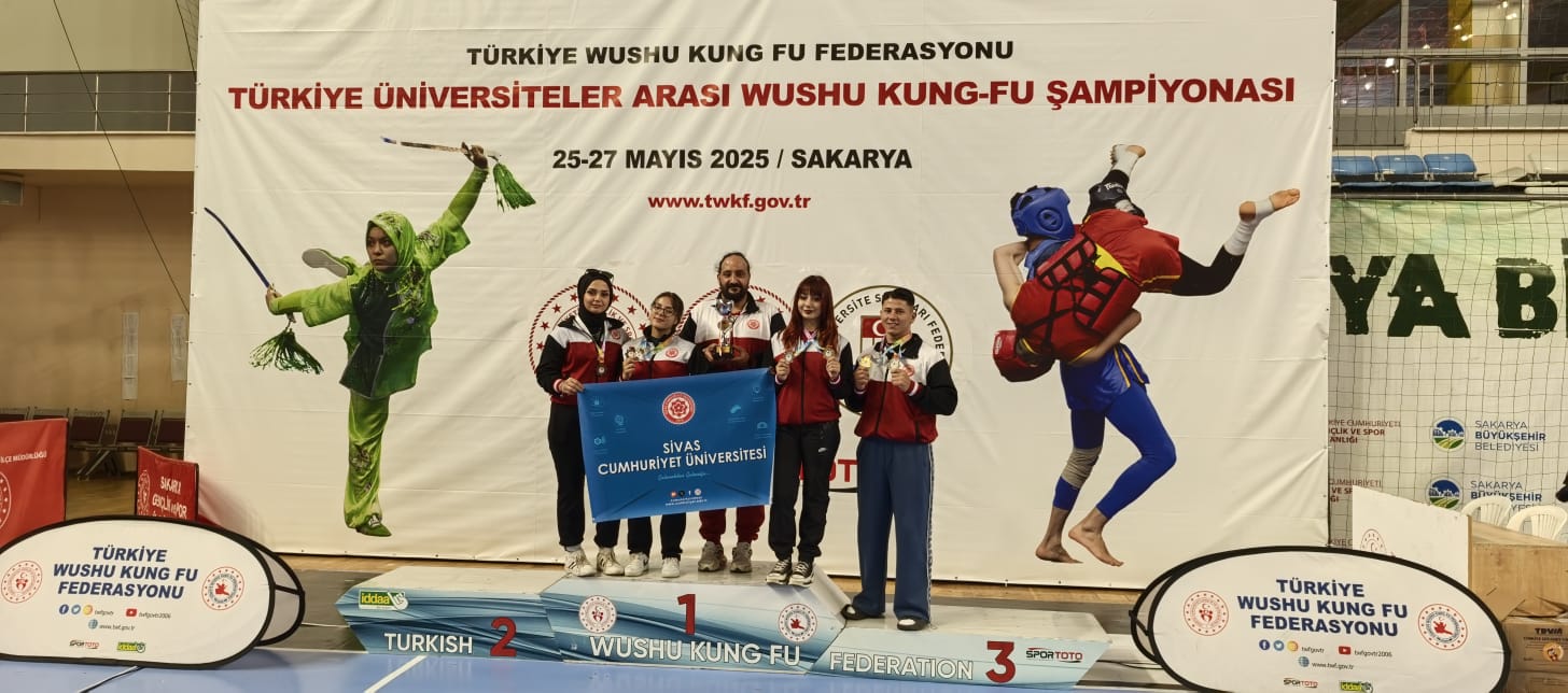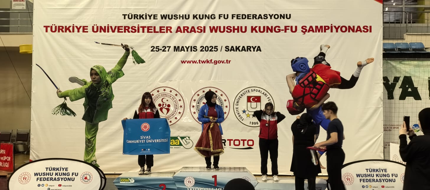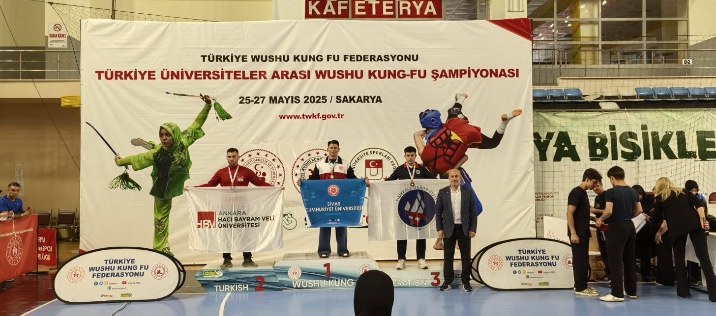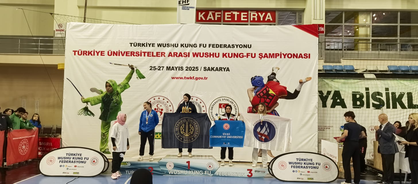 25-27 Mayıs 2025 tarihleri arasında Sakarya'da düzenlenen Üniversiteler Arası Wushu Türkiye Şampiyonasında, Üniversitemizden sporcularımız 2 altın, 3 gümüş ve 2 bronz olmak üzere toplam 7 madalya kazanarak büyük bir başarıya imza attı.