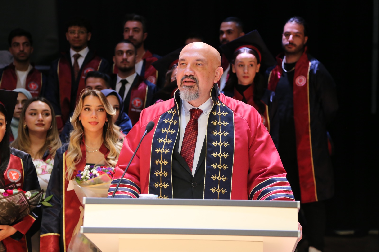 Saygı Duruşu ve İstiklal Marşı’nın ardından açış konuşmalarına geçildi. Açılış konuşmasını yapan Fakülte Dekanı Gülmez, ailelere seslenerek “Emanetiz olan öğrencilerimizi teorik ve pratik bilgilerle donatarak mesleklerini uygulamaya hazır hale getirmeye çalıştık. Sizlere ve memleketimize en iyi şekilde hizmet edeceklerinden eminiz” dedi. Rektör Yardımcımız Prof. Dr. Salih Cem İnan da; “Hayatta zorluklarla karşılaşabilirsiniz. Sizlere Mustafa Kemal Atatürk’ün şu sözünü hatırlatmak isterim “Ümitsiz durumlar yoktur, ümitsiz insanlar vardır. Ben hiçbir zaman ümidimi yitirmedim.” Sizler de ülkemiz, aileniz ve kendiniz için çalışmaktan asla vazgeçmeyin” dedi.