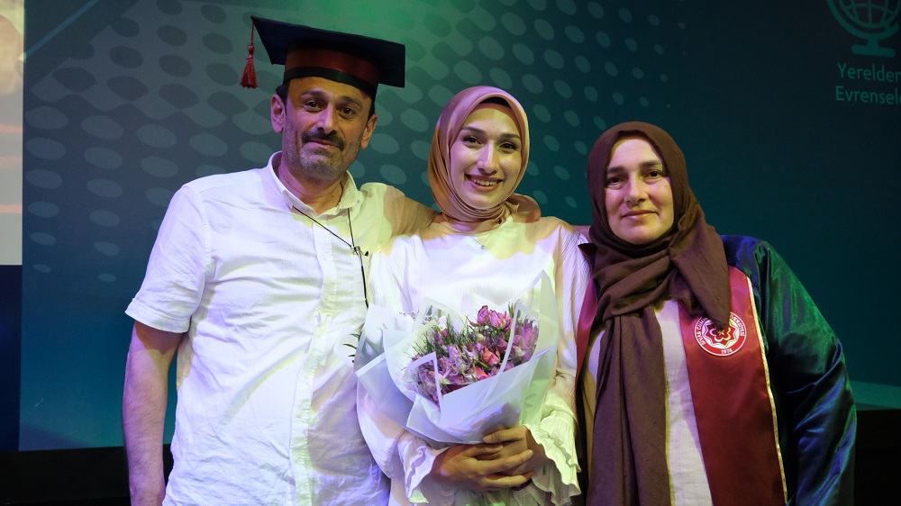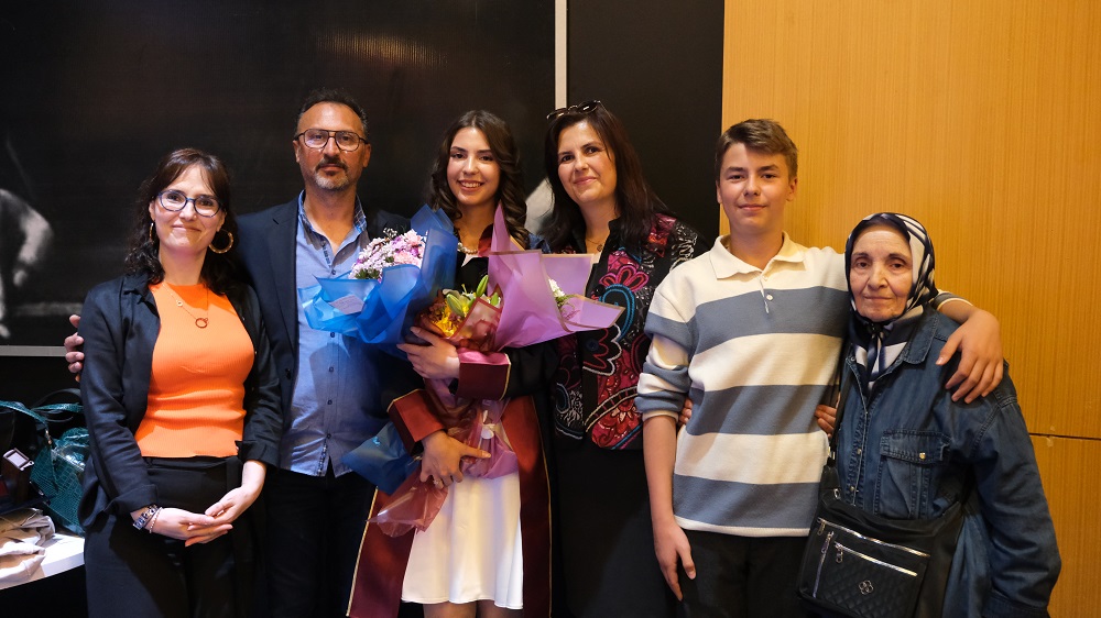 Bazı öğrenciler, keplerini ve cüppelerini ailelerine giydirerek, sevinçlerini paylaştı.