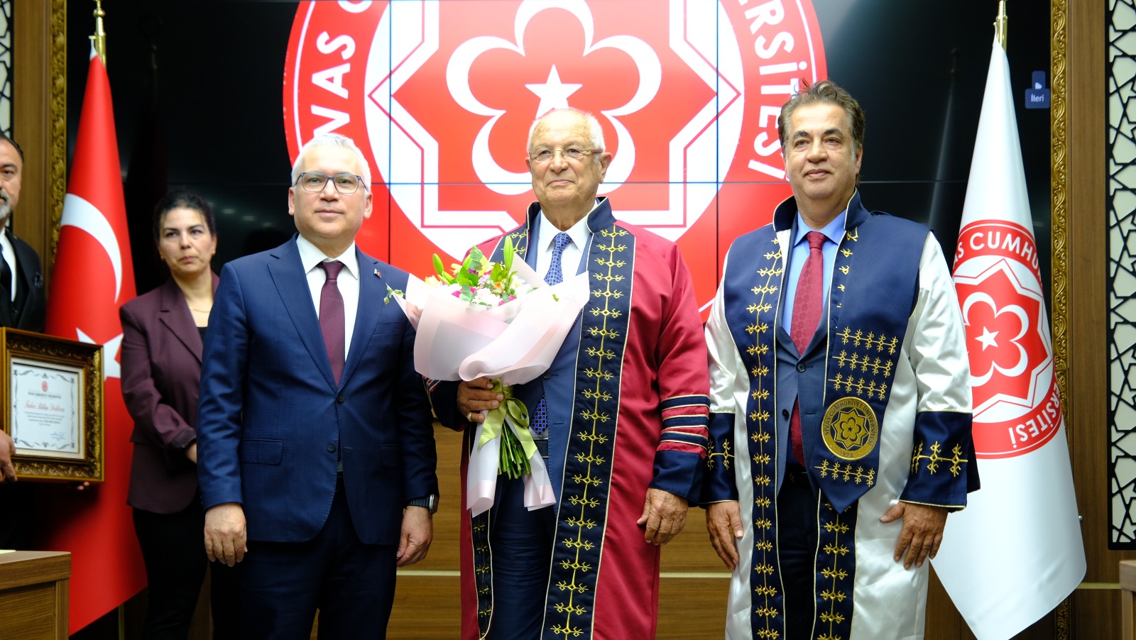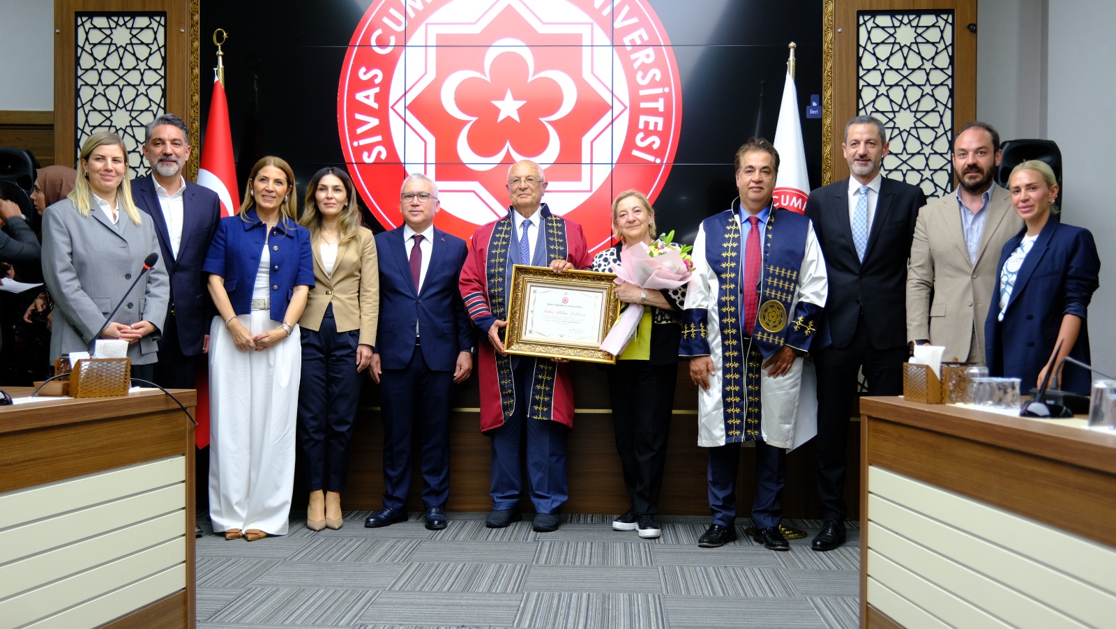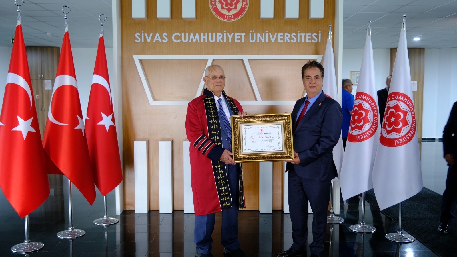 Sivaslı İş İnsanı Lütfi Abay’a Üniversitemiz Senatosu kararıyla “Fahri Bilim Doktorluğu” ünvanı verildi. Üniversitemiz Senato Toplantı Salonunda gerçekleşen törene Sivas Valisi Dr. Yılmaz Şimşek ve eşi Dr. Çiğdem Olgun Şimşek Hanımefendi, Rektörümüz Prof. Dr. Ahmet Şengönül, Rektör Yardımcılarımız Prof. Dr. Hayati Öztürk ve Prof. Dr. Salih Cem İnan, Genel Sekreterimiz Doç. Dr. Yüksel Aydın, Rektör Danışmanlarımız Doç. Dr. Nevzat Balıkçıoğlu ve Fuat Çamlıbel, dekanlar, müdürler, akademik ve idari personel ile Hayırsever İş İnsanı Lütfi Abay’ın ailesi katıldı.