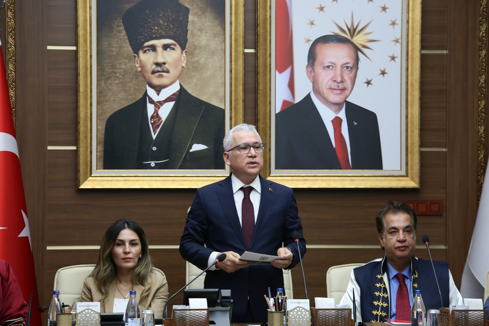 Sivas Valisi Dr. Yılmaz Şimşek’te yaptığı konuşmada Hayırsever İş İnsanı Lütfi Abay’a verilen Fahri Doktora Ünvanın kendisine ve ailesine hayırlı ve uğurlu olmasını dileyerek şunları söyledi: “Bizler biliyoruz ki Sayın Lütfi Abay iş dünyasındaki başarısının ötesinde sahip olduğu imkânları toplumsal faydaya dönüştüren bir hayırseverdir. Özellikle eğitim ve bilim alanındaki katkıları sadece şehrimize değil ülkemize de örnek teşkil etmiştir.” Abay’ın temel eğitimin yanı sıra Üniversitemize yaptığı yatırımlara ve yardımlara değinen Vali Şimşek LAKEV bilim ödüllerinin araştırma ve akademik üretimin teşvik edilmesi açısından önemine vurgu yaptı. Vali Şimşek konuşmasının devamında; “Sayın Abay’ın eğitime yaptığı her katkı aslında bir kişinin değil bir neslin yaşamına dokunmaktadır. Eğitimin her kademesine yapmış olduğu katkılar Abay’ı eğitime hayat verenler içerisinde müstesna bir yere taşımıştır. Sayın Abay eğitime adanmış bir hayatın sonucu olarak bir bilim yuvasının bir şahsa verebileceği en yüksek onurlardan biri olan Fahri Doktora Ünvanını almaktadır. Başta Rektörümüz olmak üzere tüm Senato üyelerimize teşekkür ediyorum. Bu özel günün tüm hayırseverlere ilham vermesini temenni ediyorum” dedi.