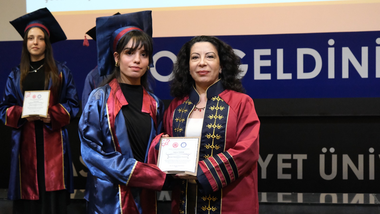 Ardından diploma törenine geçildi. Başta derece alan mezunlar olmak üzere tüm mezunlara diplomaları dağıtıldı.