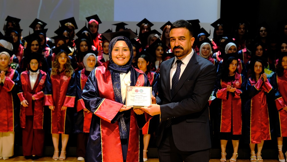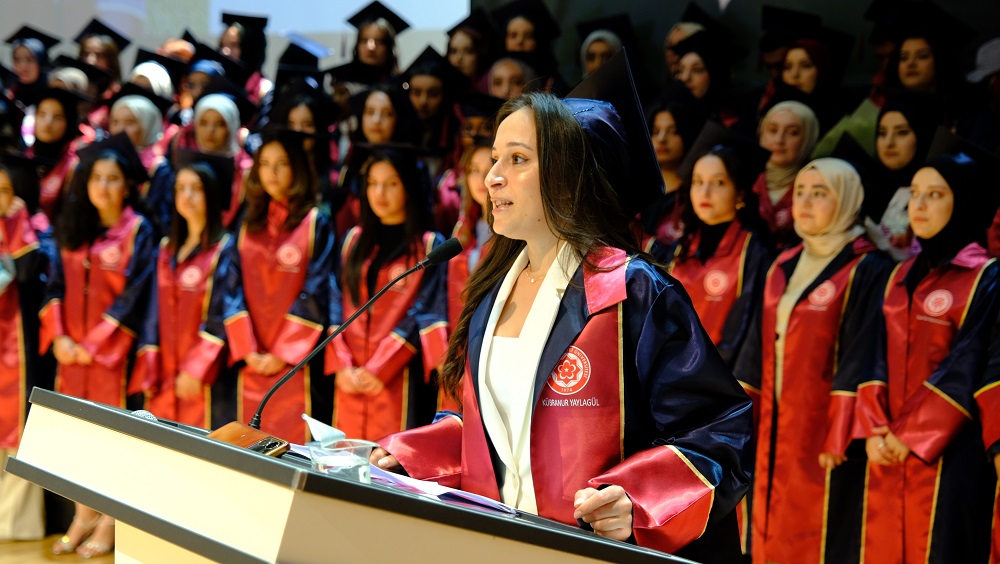 Tören açış konuşmasını gerçekleştiren Rektör Yardımcısı Prof. Dr. Öztürk, “Sağlık, insan hayatının en kıymetli değeridir. Bu alanda yetişen her birey, yalnızca meslek sahibi değil; aynı zamanda topluma umut, şifa ve güven sunan birer neferdir. Mezuniyetlerinden ötürü öğrencilerimizi kutluyor, bugünün mimarı olan hocalarımıza ve ailelerimize teşekkür ediyorum.” ifadelerini kullandı.