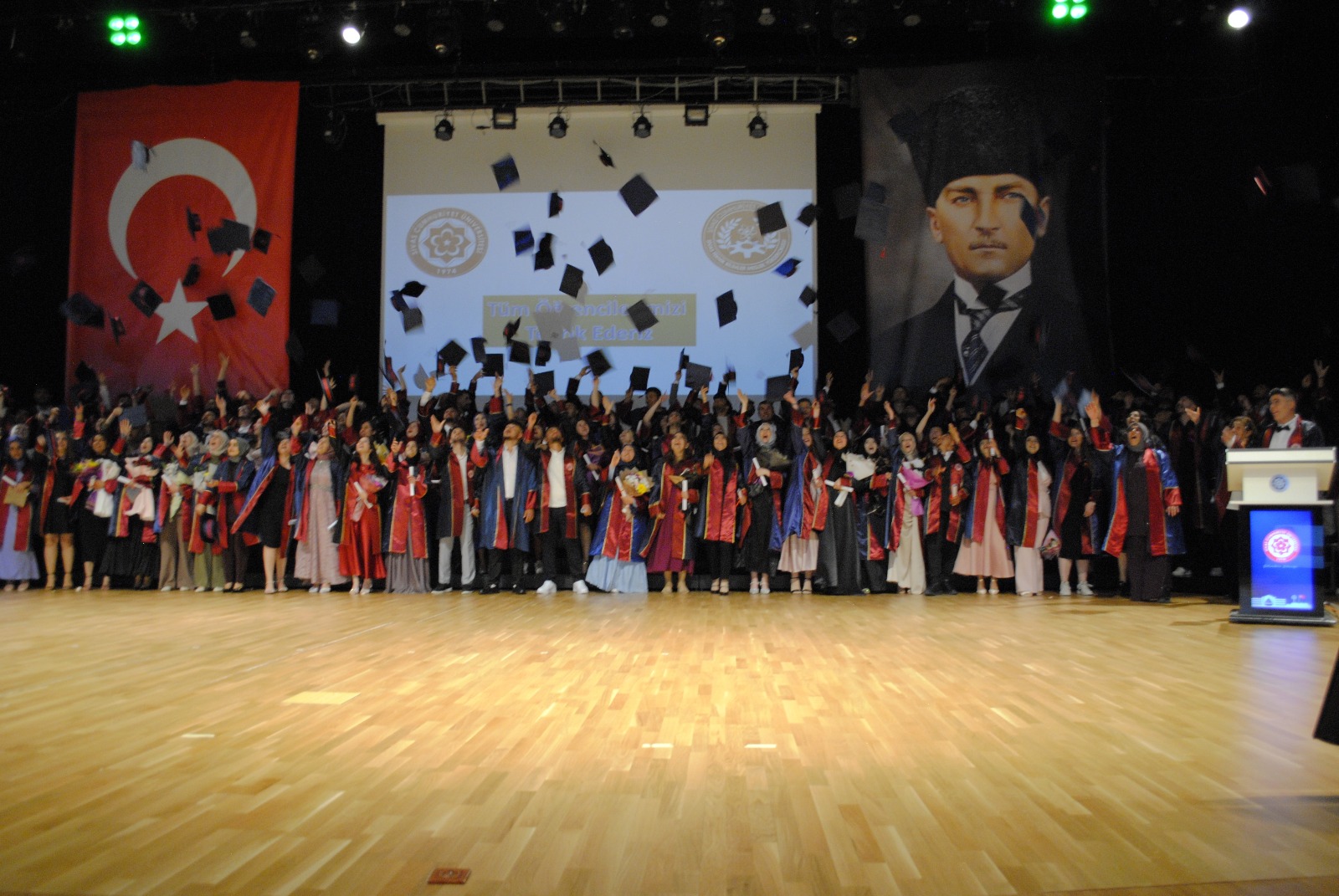 Mezuniyet töreni, öğrencilere diplomalarının verilmesinin ardından gerçekleştirilen kep atma seremonisi ile sona erdi.