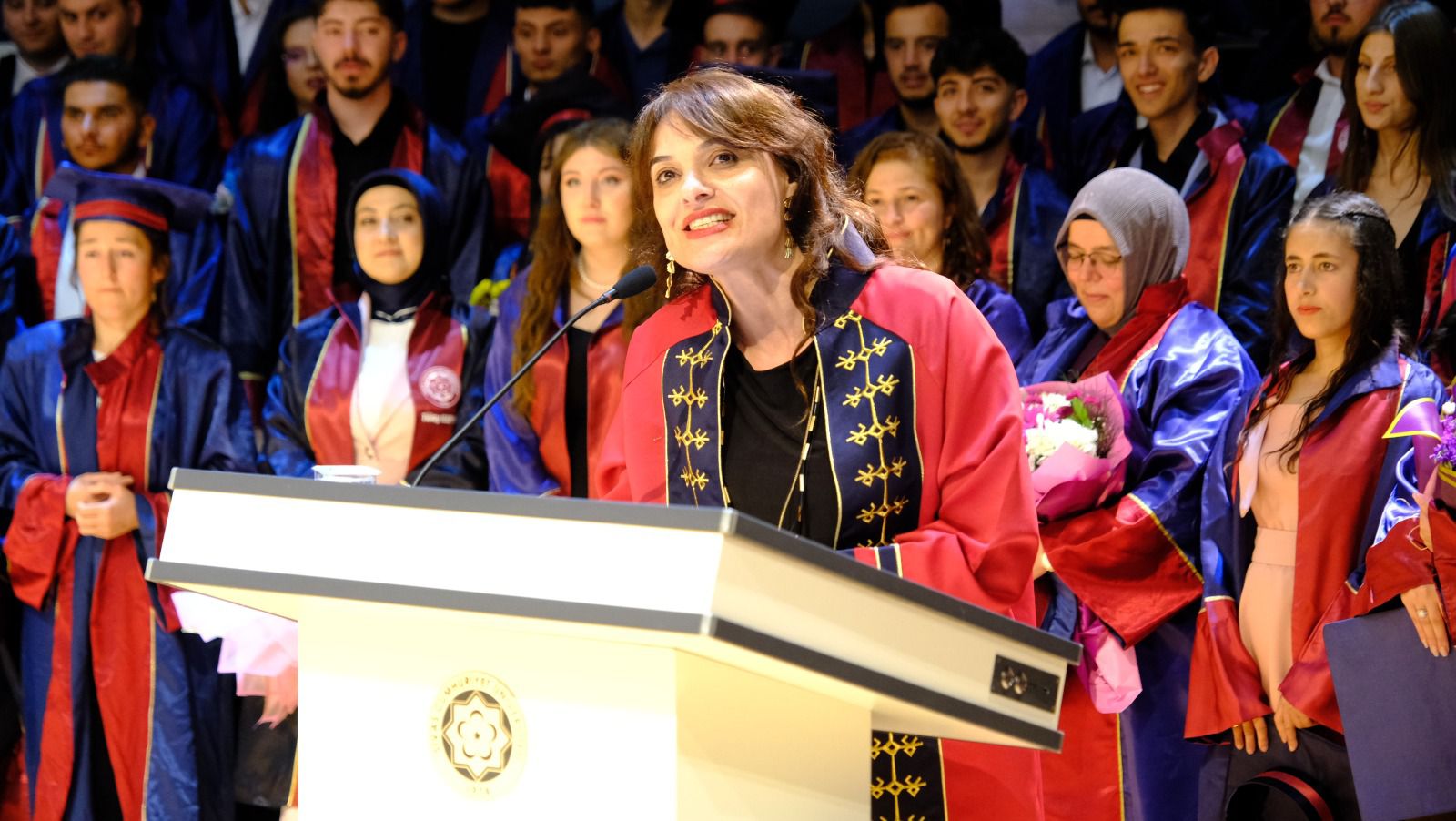 Bu anlamlı yolculukta emek veren değerli akademik kadromuza ve her zaman destek olan kıymetli ailelerimize teşekkürlerimi sunuyorum. Mezun olan öğrencilerimizi gönülden kutluyor, gelecek yaşamlarında başarılar diliyorum.” ifadelerine yer verdi.