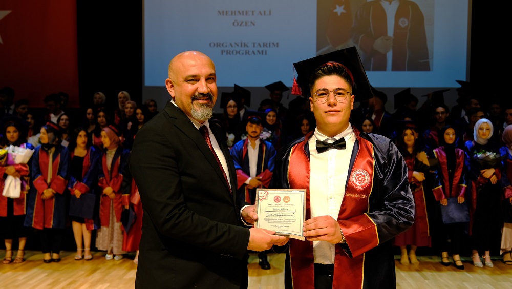 Programın devamında Yüksekokul birincisi Bitkisel ve Hayvansal Üretim Bölümü öğrencisi Mehmet Ali Özen gelenekselleşen Yaş Kütüğü’ne ismini çakarak, plaket ve belgesini aldı.