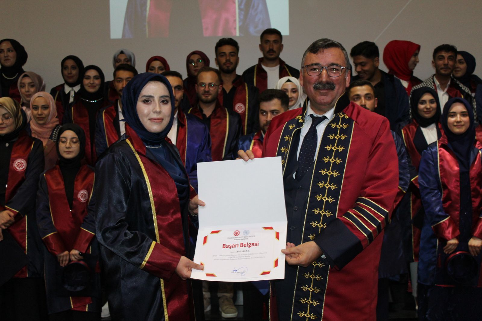 Tören kapsamında, dereceye giren öğrencilere başarı belgeleri takdim edildi. Ardından mezun öğrenciler, diplomalarını alarak emeklerinin karşılığını kutladı. Program, ilahi konseriyle renklenirken, kep atma seremonisiyle sona erdi.