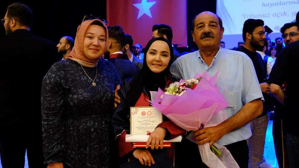 4 Eylül Kültür Merkezinde gerçekleştirilen törene; SCÜ Rektör Yardımcısı Prof. Dr. Süleyman Değirmen, Genel Sekreter Doç. Dr. Yüksel Aydın, Rektör Danışmanı Doç. Dr. Nevzat Balıkçıoğlu, Fakülte Dekanı Prof. Dr. Gülay Ercins, dekanlar, müdürler, akademik ve idari personel, öğrenciler ile aileleri katıldı.