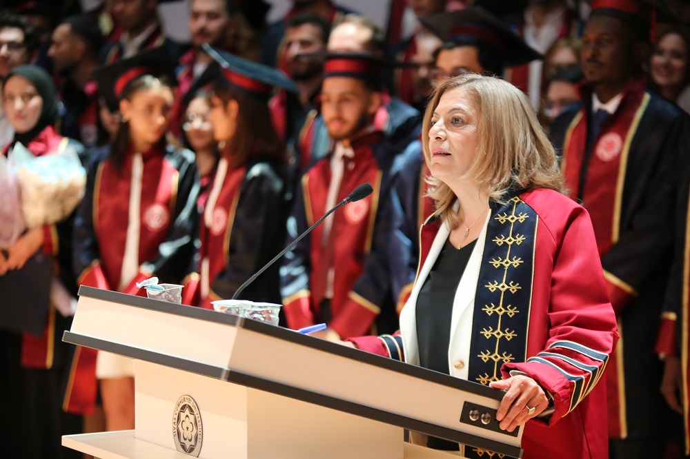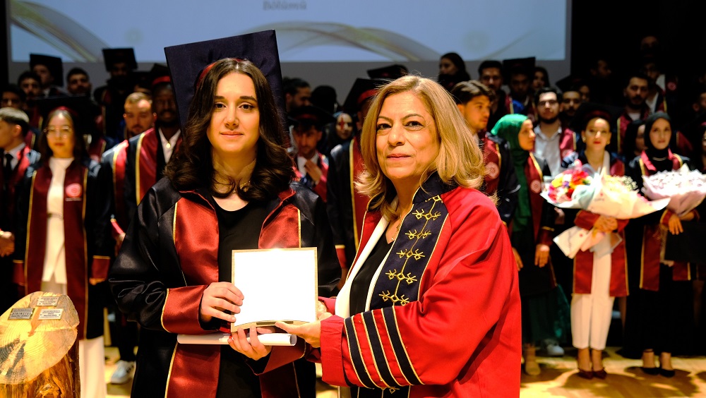 Rektör Yardımcısı Prof. Dr. Değirmen ise törende gerçekleştirdiği konuşmada, “Öğrencilerimizin emek, sabır ve kararlılıkla yürüdükleri bu yolun sonunda ulaştıkları mezuniyet anına tanıklık etmek, hepimiz için son derece anlamlı ve kıymetlidir.