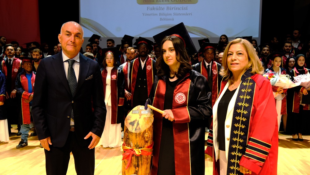 Programın devamında, Fakülte birincisi olan Yönetim Bilişim Sistemleri Bölümü öğrencisi Nisa Ecem Güdür, geleneksel olarak gerçekleştirilen Yaş Kütüğü’ne ismini çakarak plaket ve belgesini aldı.