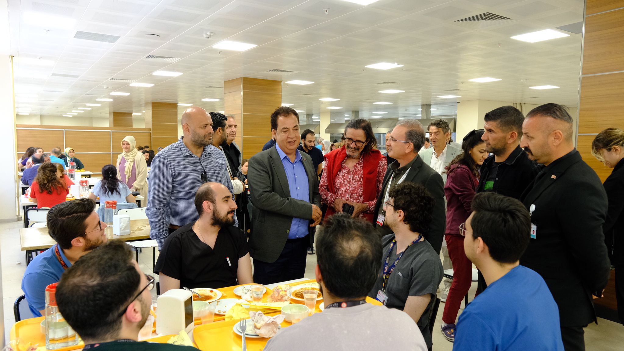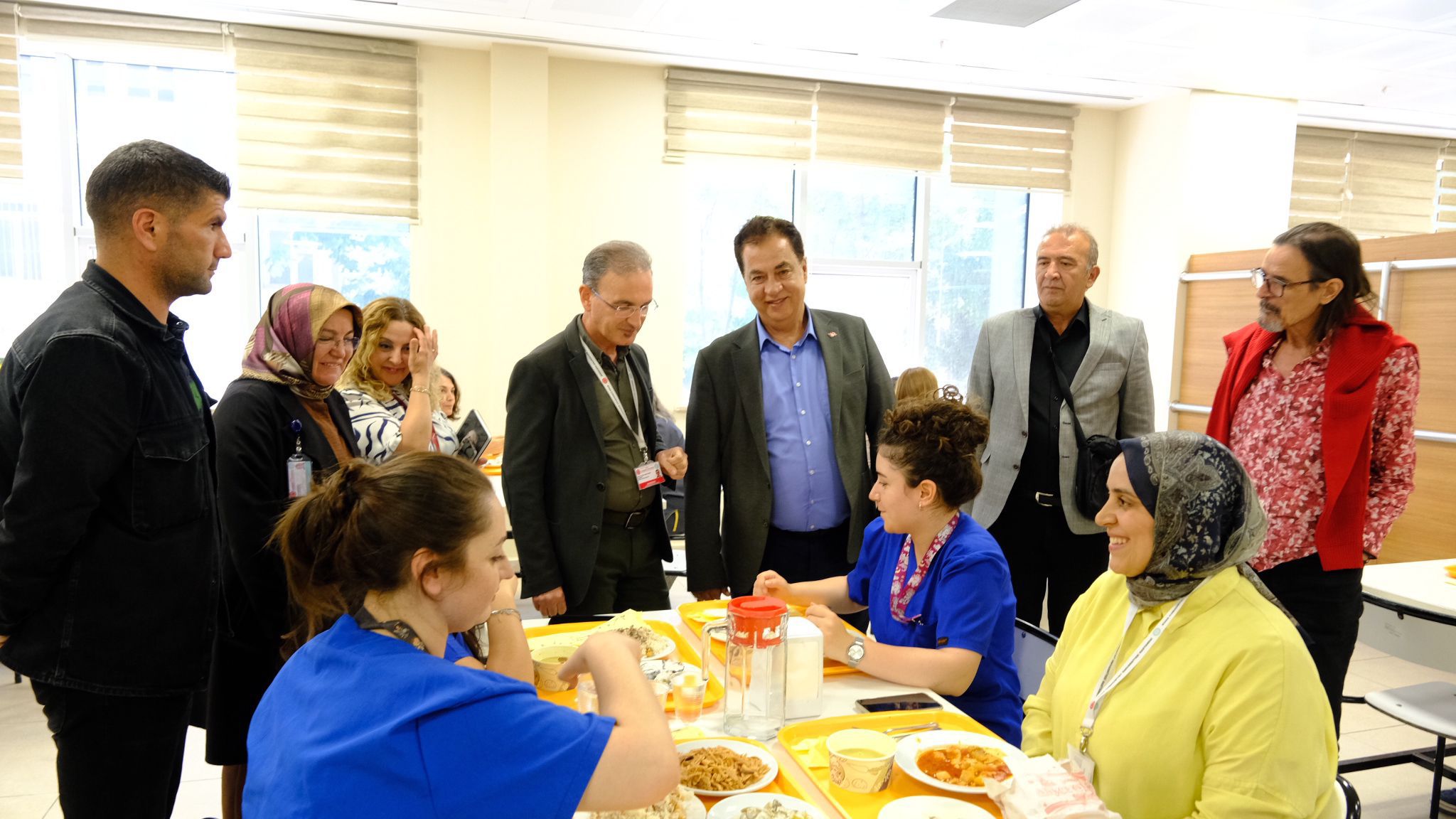 Yemek sırasında Rektörümüz, hastane personelinin yemeklerden memnuniyetini sorarak, Rektörlükten taleplerini ve isteklerini dinledi. Personel, bu samimi ziyaret ve ilgi dolayısıyla büyük memnuniyet duyduğunu ifade etti.