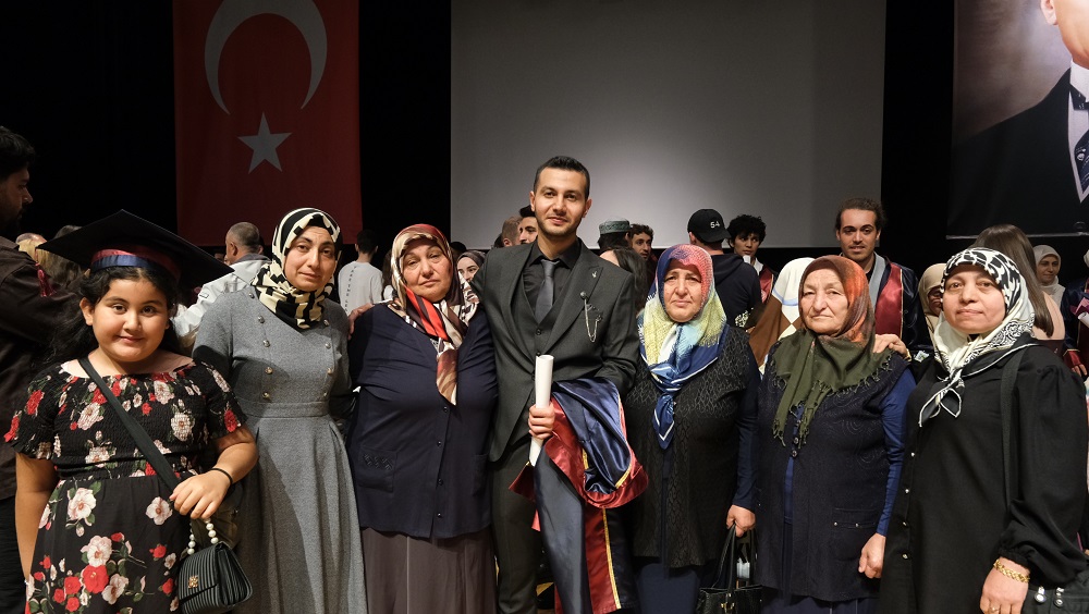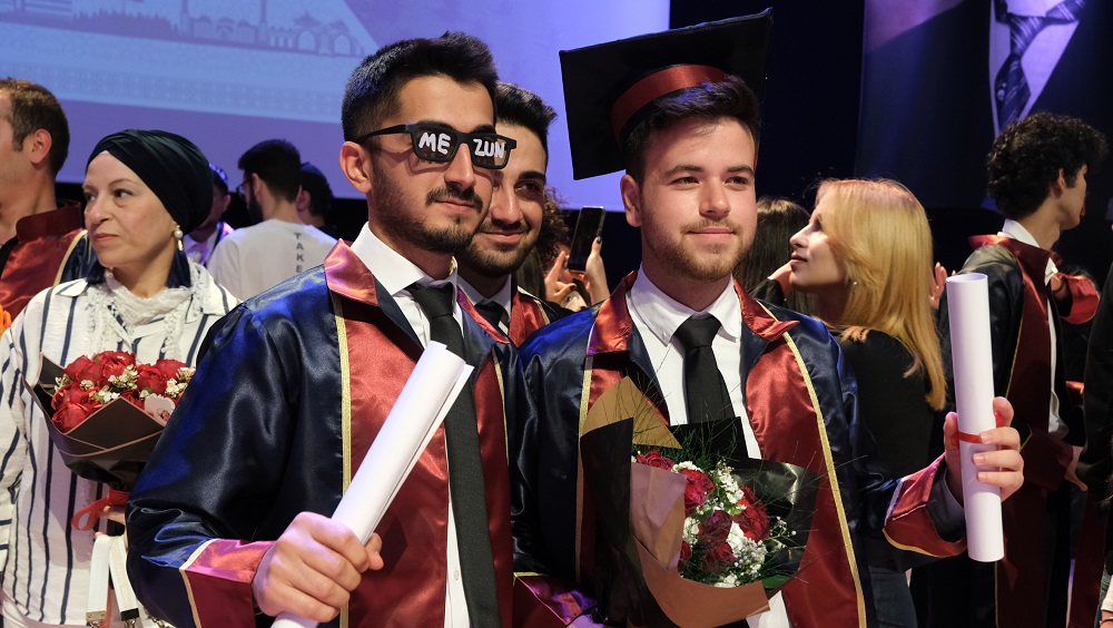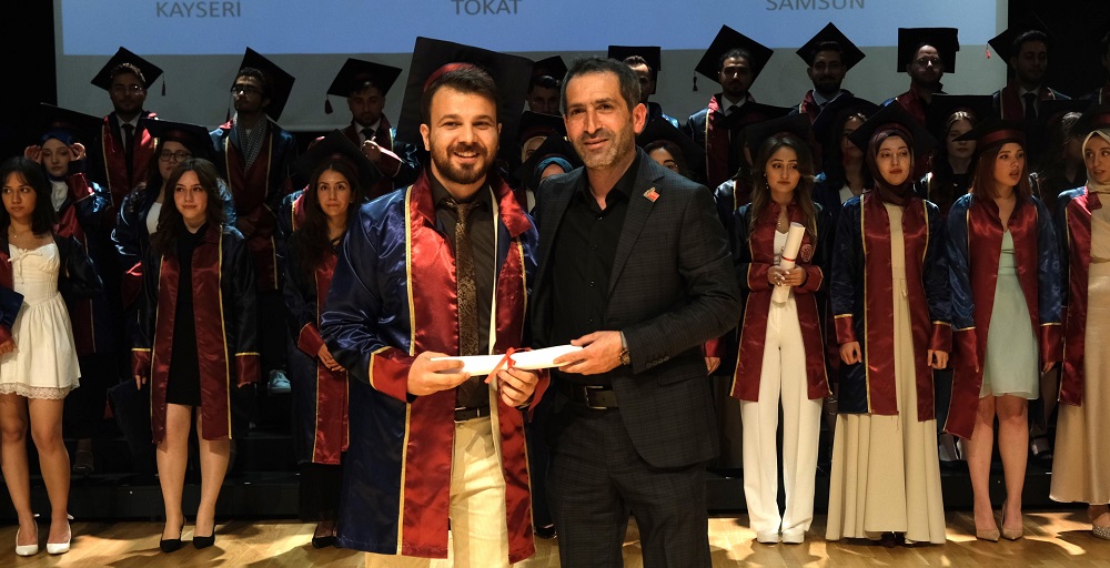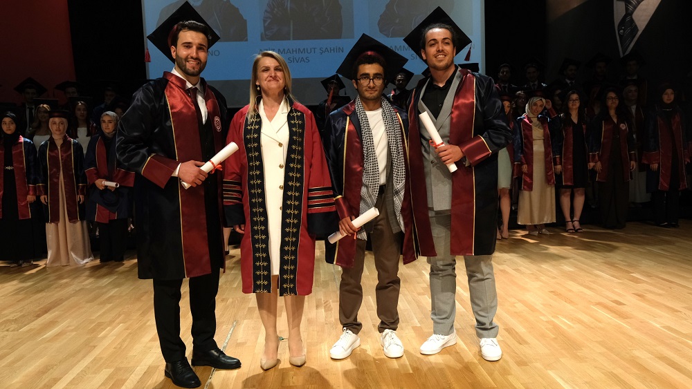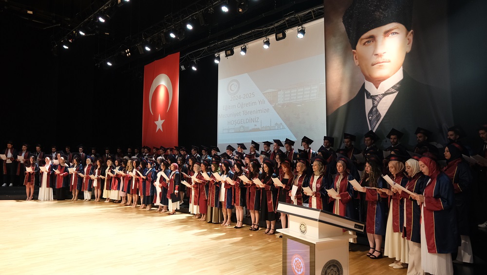 Tören programı, mezunlara diploma takdimi, toplu fotoğraf çekimi ve geleneksel hale gelen kep atma seremonisi ile sona erdi.