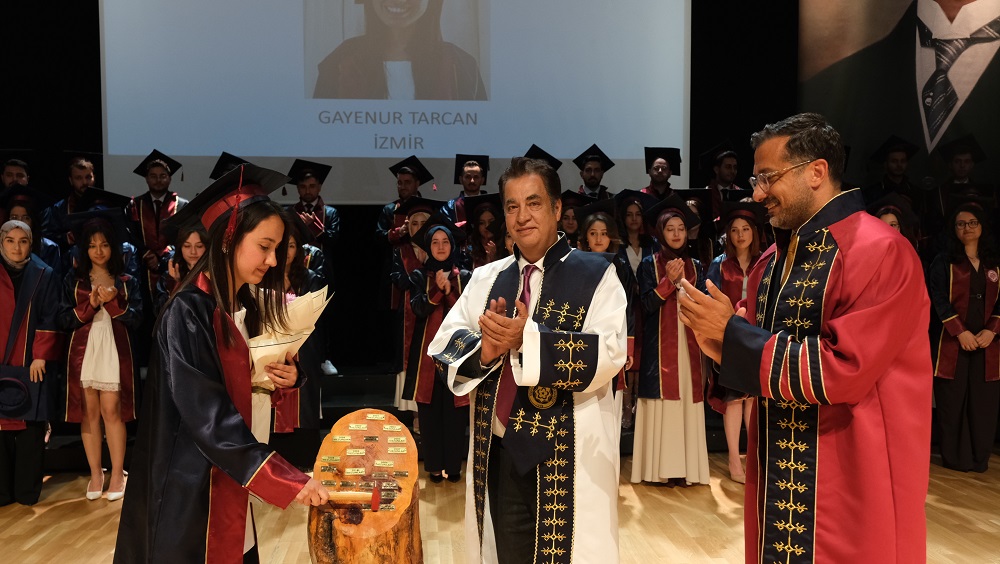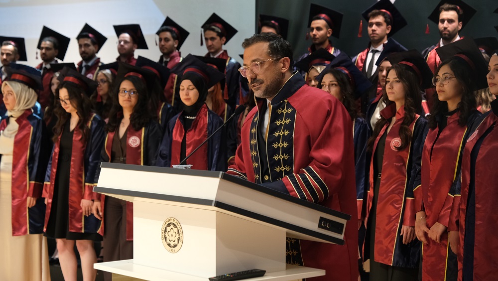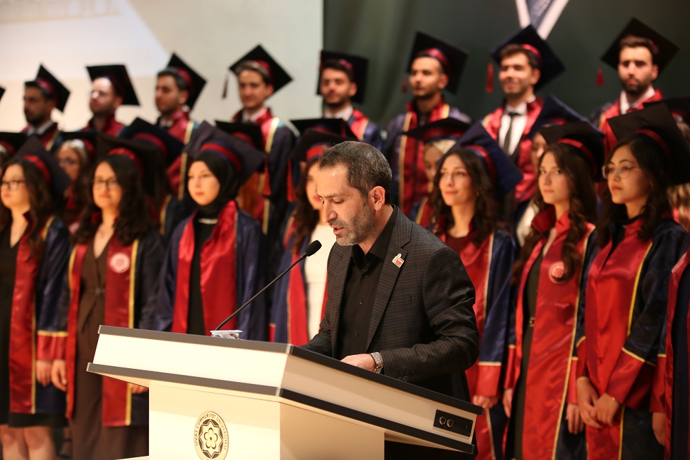 Şunu asla unutmayın ki, alacağınız her karar ve yapacağınız her müdahale, doğrudan insan hayatına dokunacak, insanların yaşam kalitesini etkileyerek sağlıklarına yön verecektir. Bu nedenle, mesleğinizi büyük bir saygı, sevgi ve sorumluluk bilinciyle icra etmeniz en büyük dileğimizdir. Bu kutsal görevi layıkıyla yerine getireceğinize, üniversitemizi ve ülkemizi en iyi şekilde temsil edeceğinize yürekten inanıyorum. Hepinize meslek hayatınızda başarılar diliyorum.” ifadelerine yer verdi.