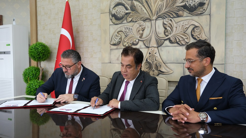 Rektörlük makamında gerçekleştirilen imza törenine; SCÜ Rektörü Prof. Dr. Ahmet Şengönül, Fakülte Dekanı Prof. Dr. Recai Zan ve Dernek Başkanı Fatih Deveci katıldı.