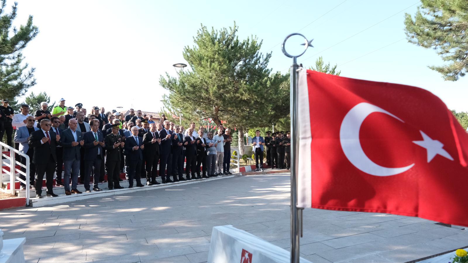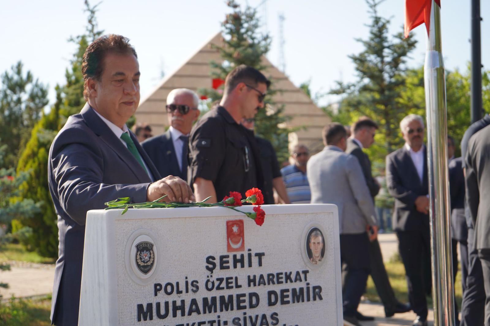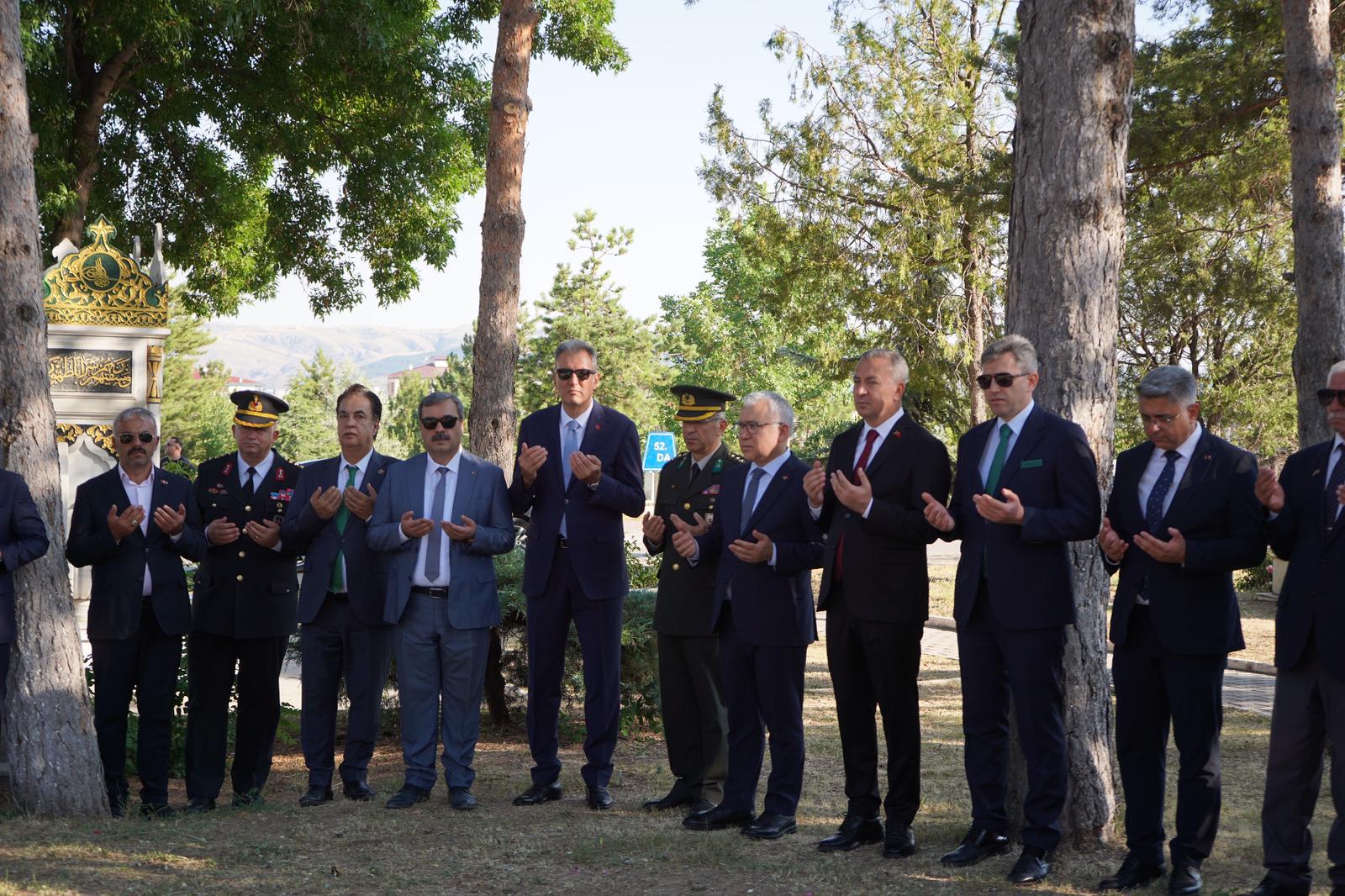 Sivas Valisi Dr. Yılmaz Şimşek, Tugay Komutanı Piyade Albay Cüneyt Mutlu, Belediye Başkanı Adem Uzun, Rektörümüz Prof. Dr. Ahmet Şengönül, Rektör Yardımcımız Prof. Dr. Süleyman Değirmen ve il protokolü, 15 Temmuz Demokrasi ve Milli Birlik Günü kapsamında Yukarı Tekke Mezarlığı’nda bulunan Polis Şehitliği, Garnizon Şehitliği ve İlk Şehitliği ziyaret etti.