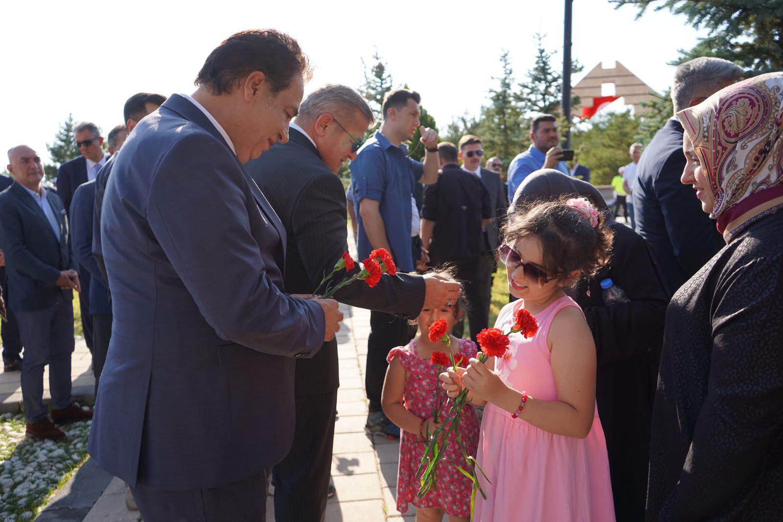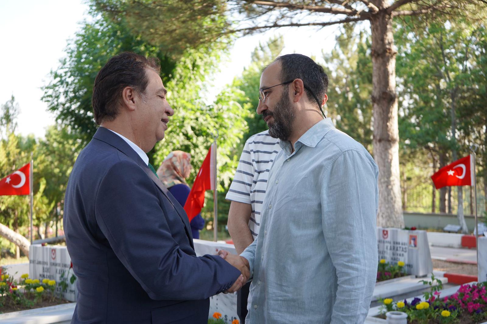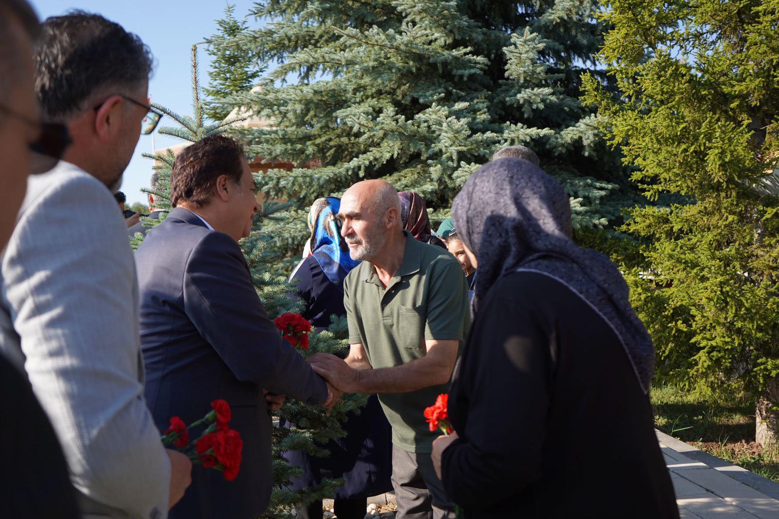 Heyet, şehit mezarlarına karanfil bırakarak, şehitlerimize ve vefat eden gazilerimizin ruhlarına edilen dualara eşlik etti.