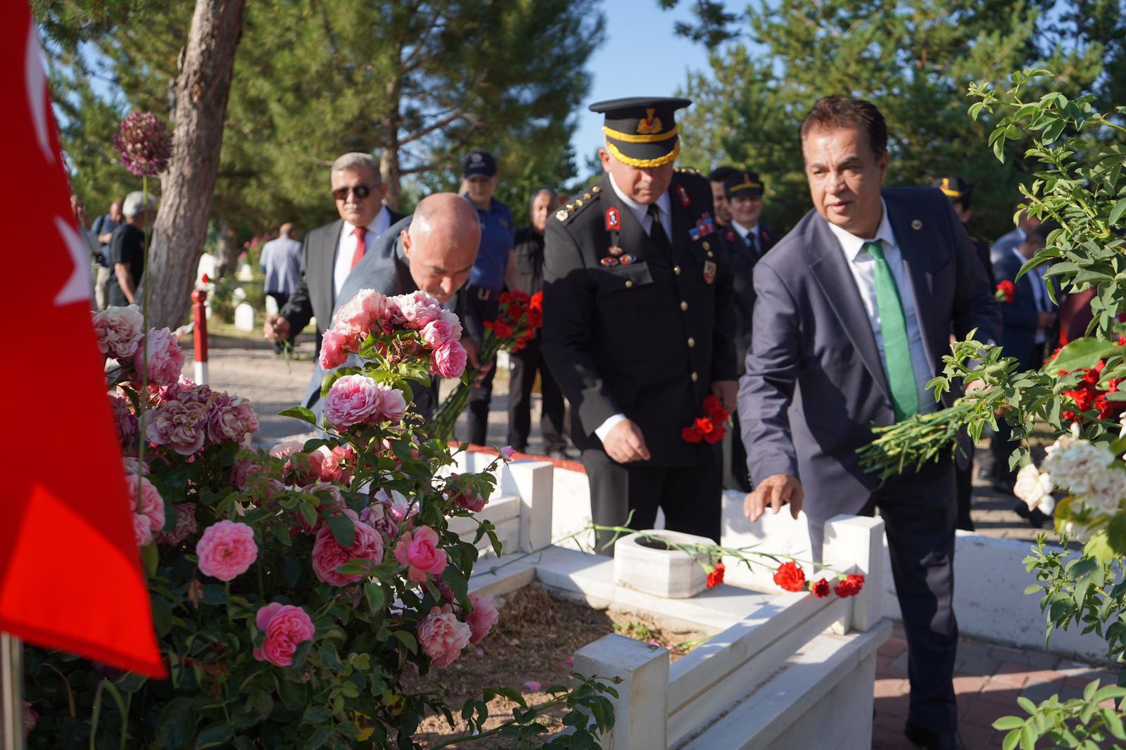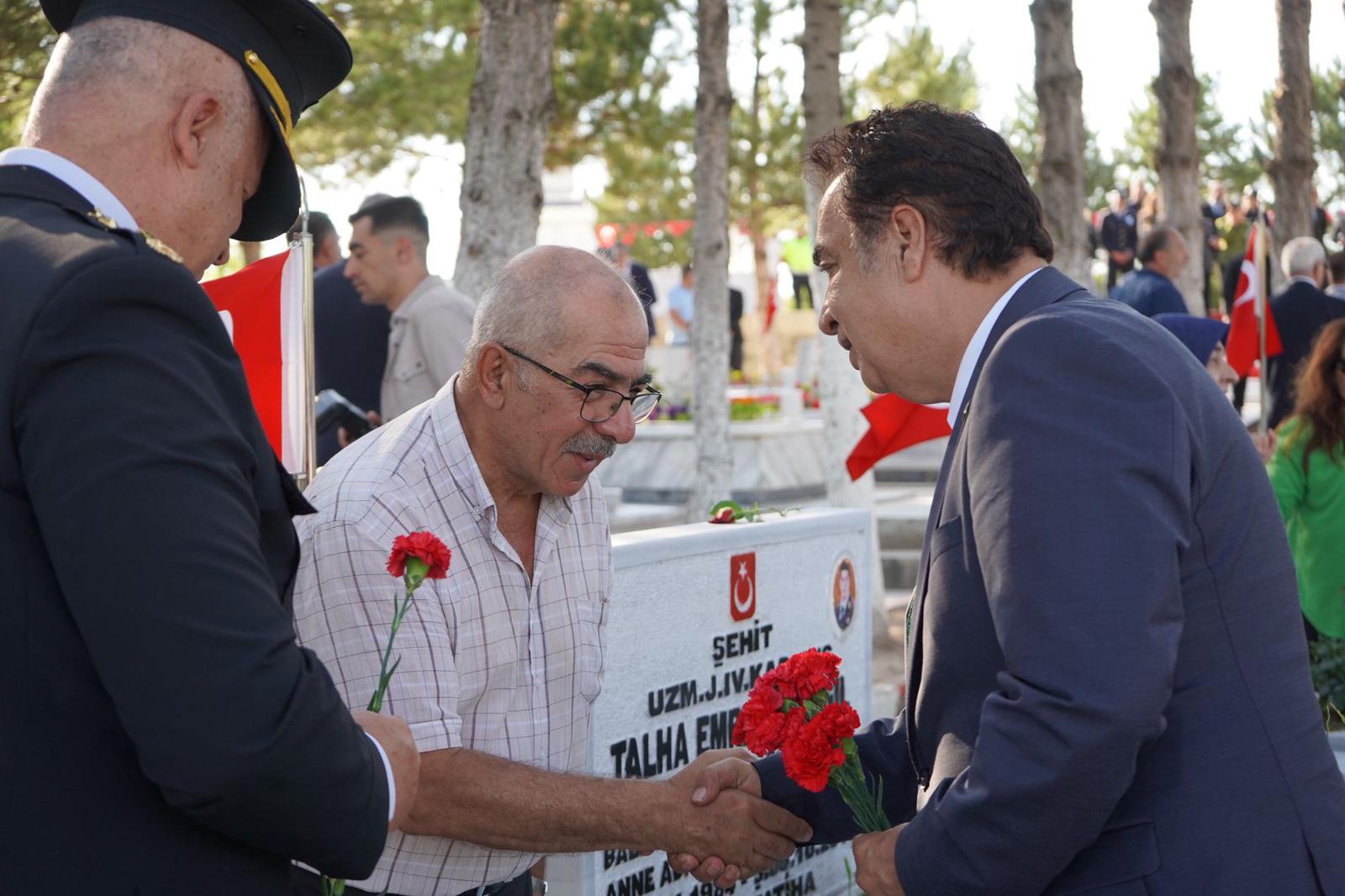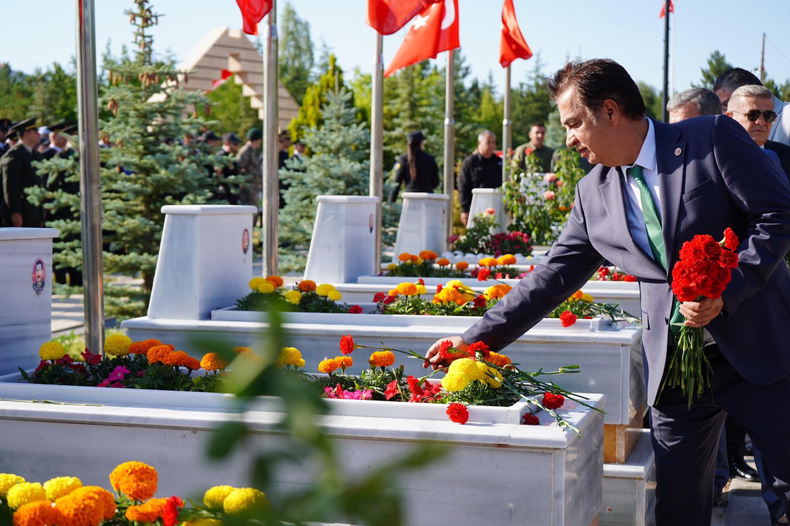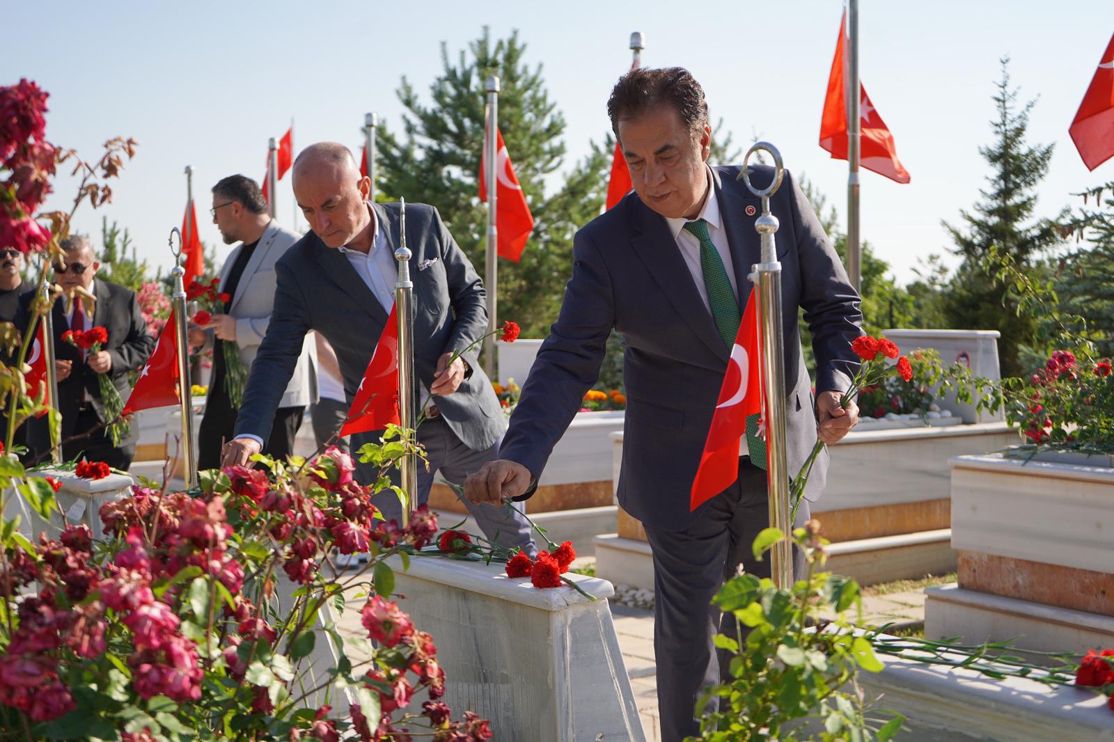 Heyet, şehit mezarlarına karanfil bırakarak, şehitlerimize ve vefat eden gazilerimizin ruhlarına edilen dualara eşlik etti.