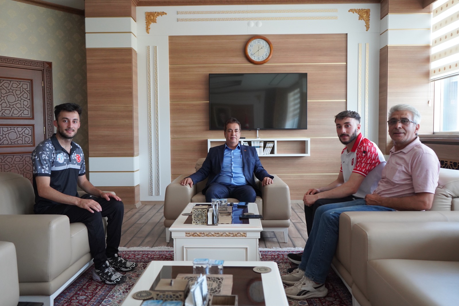 Büyükler Halter Türkiye Şampiyonası'nda gösterdikleri başarıyla bizleri gururlandıran haltercilerimiz Halil İbrahim Akbulut ve Abbas Akbulut, Rektörümüz Prof. Dr. Ahmet Şengönül'ü ziyaret etti.
