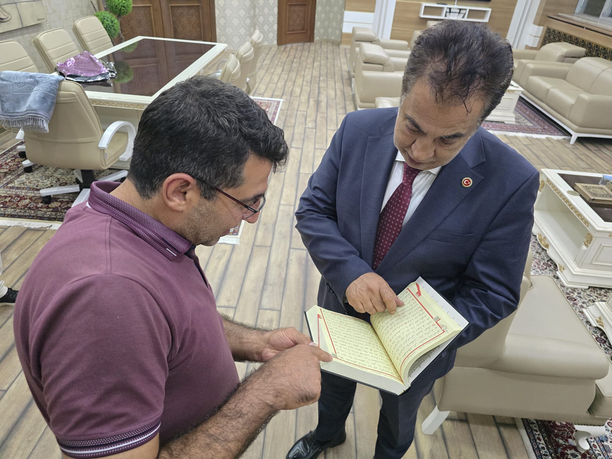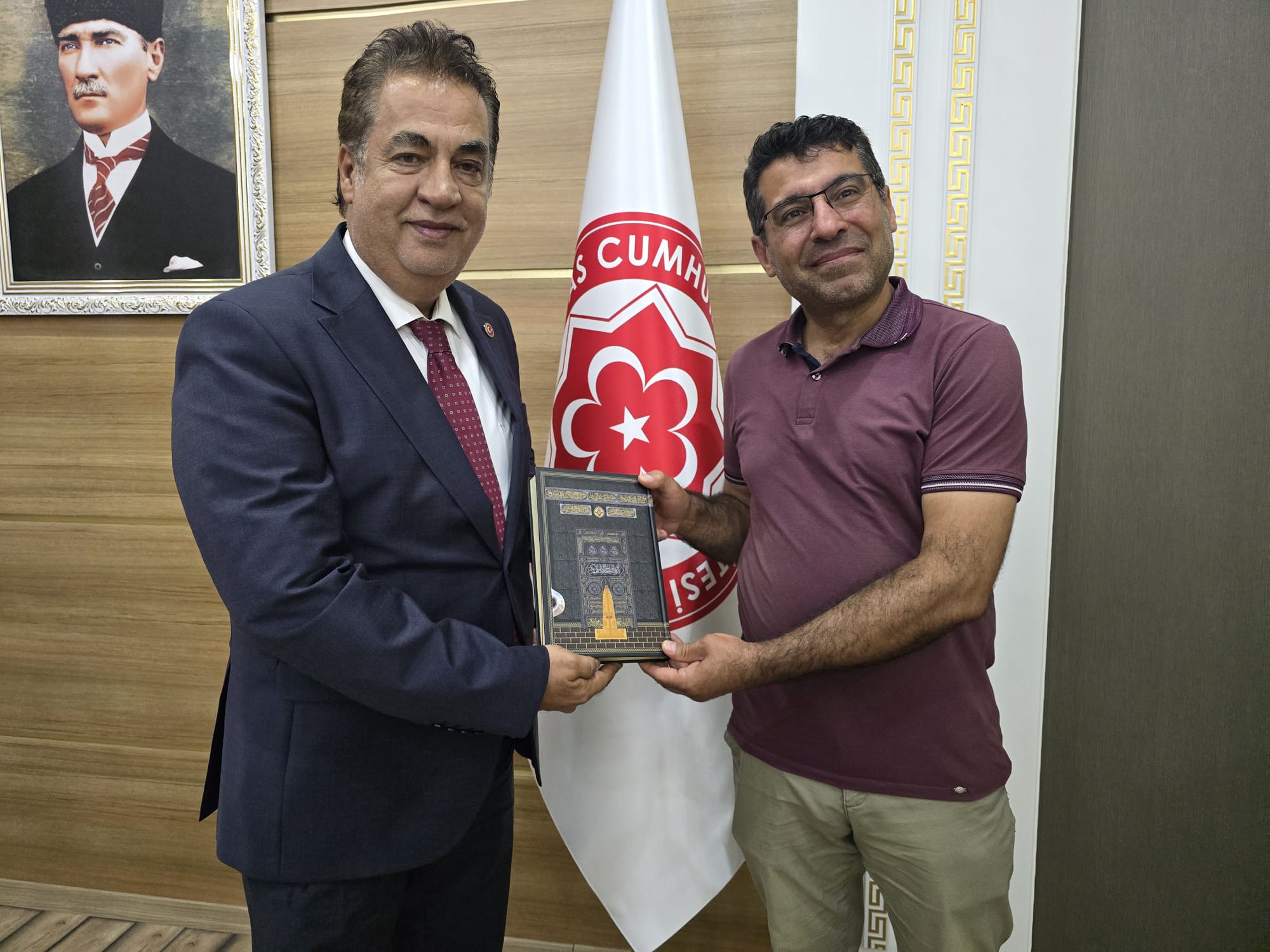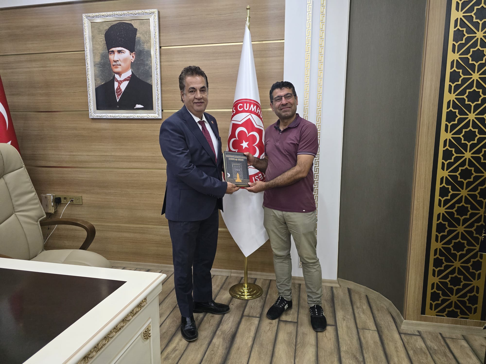 Sayın Güler, ziyaret anısına Rektörümüz Prof. Dr. Şengönül’e Kur’an-ı Kerim ve seccade hediye etti.