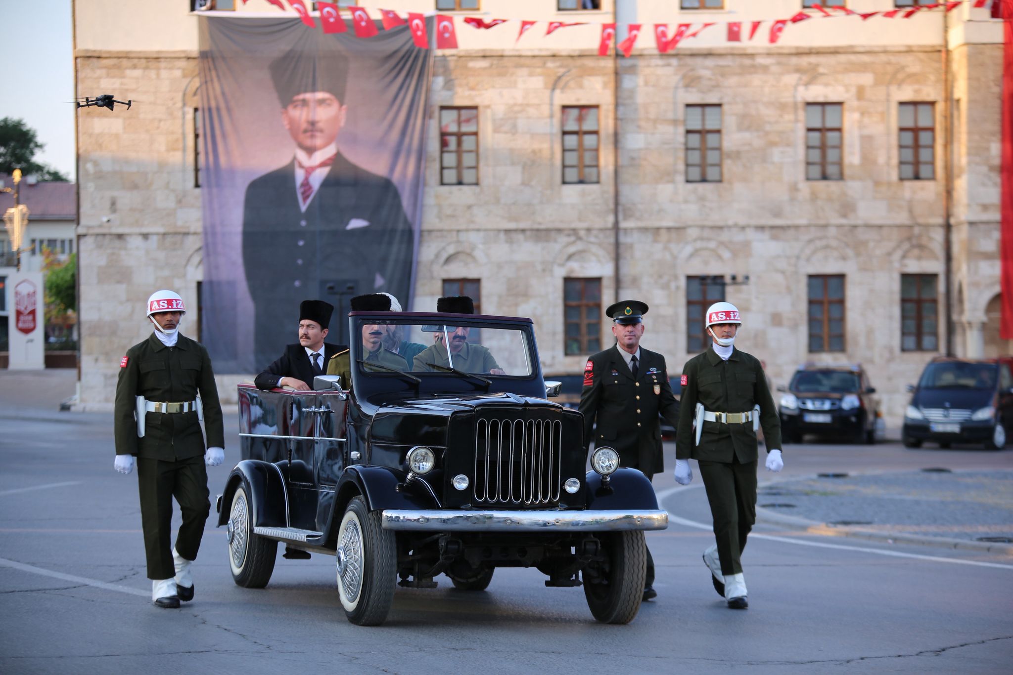 4 Eylül Sivas Kongresi’nin 106. yıl dönümü etkinlikleri kapsamında, Gazi Mustafa Kemal Atatürk’ün Erzurum’dan Sivas’a gelişi temsili olarak yeniden yaşatıldı.
