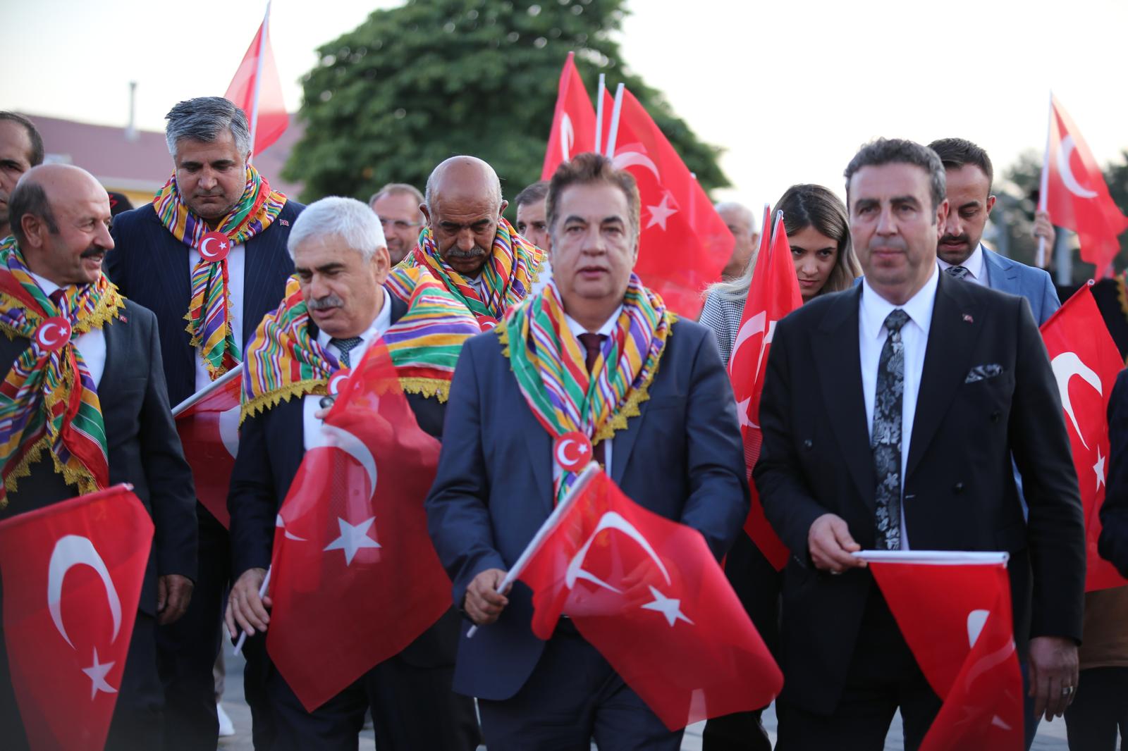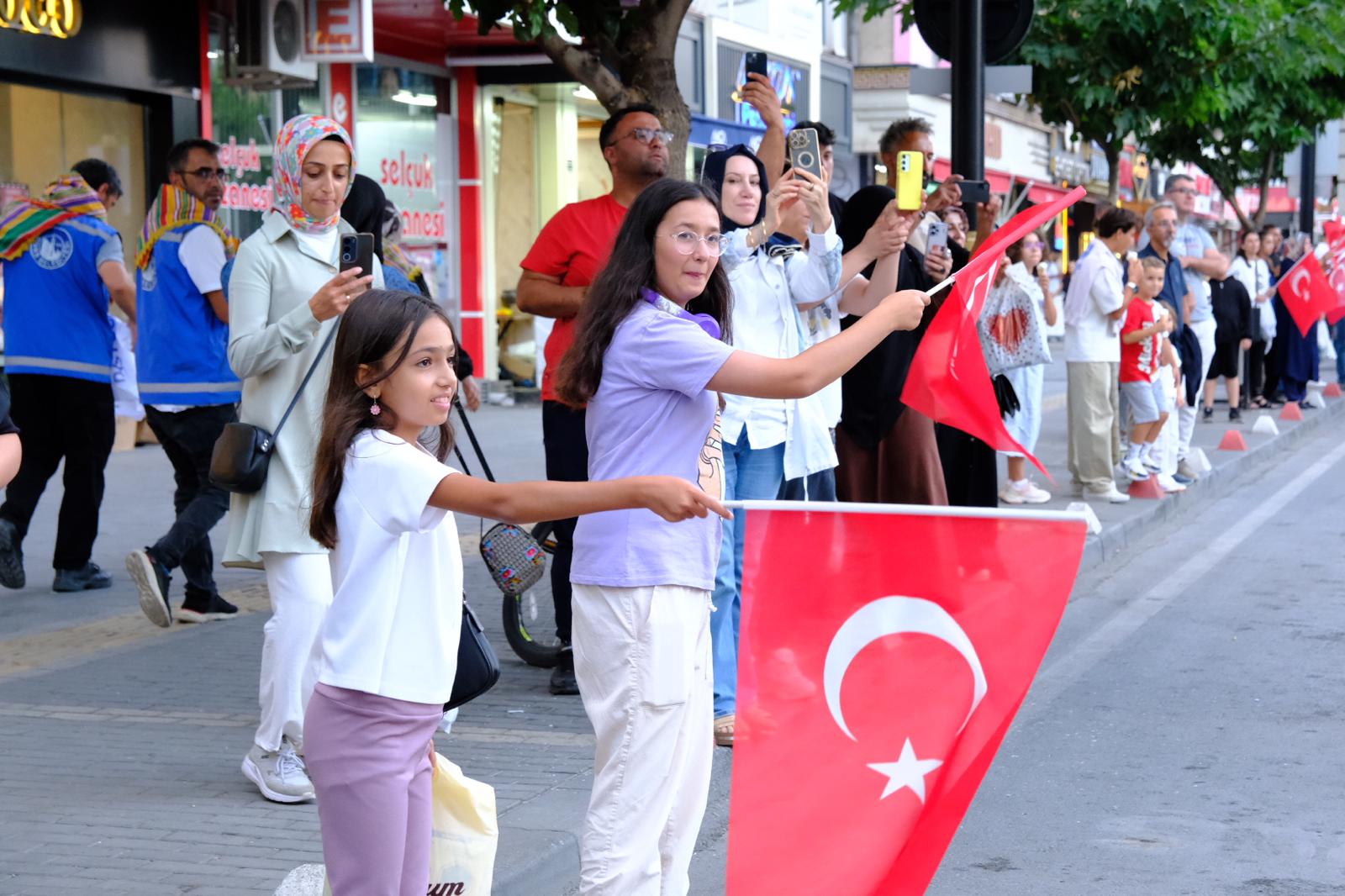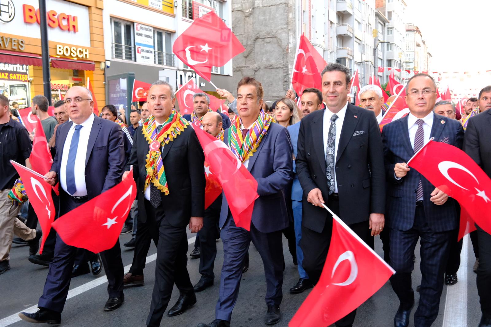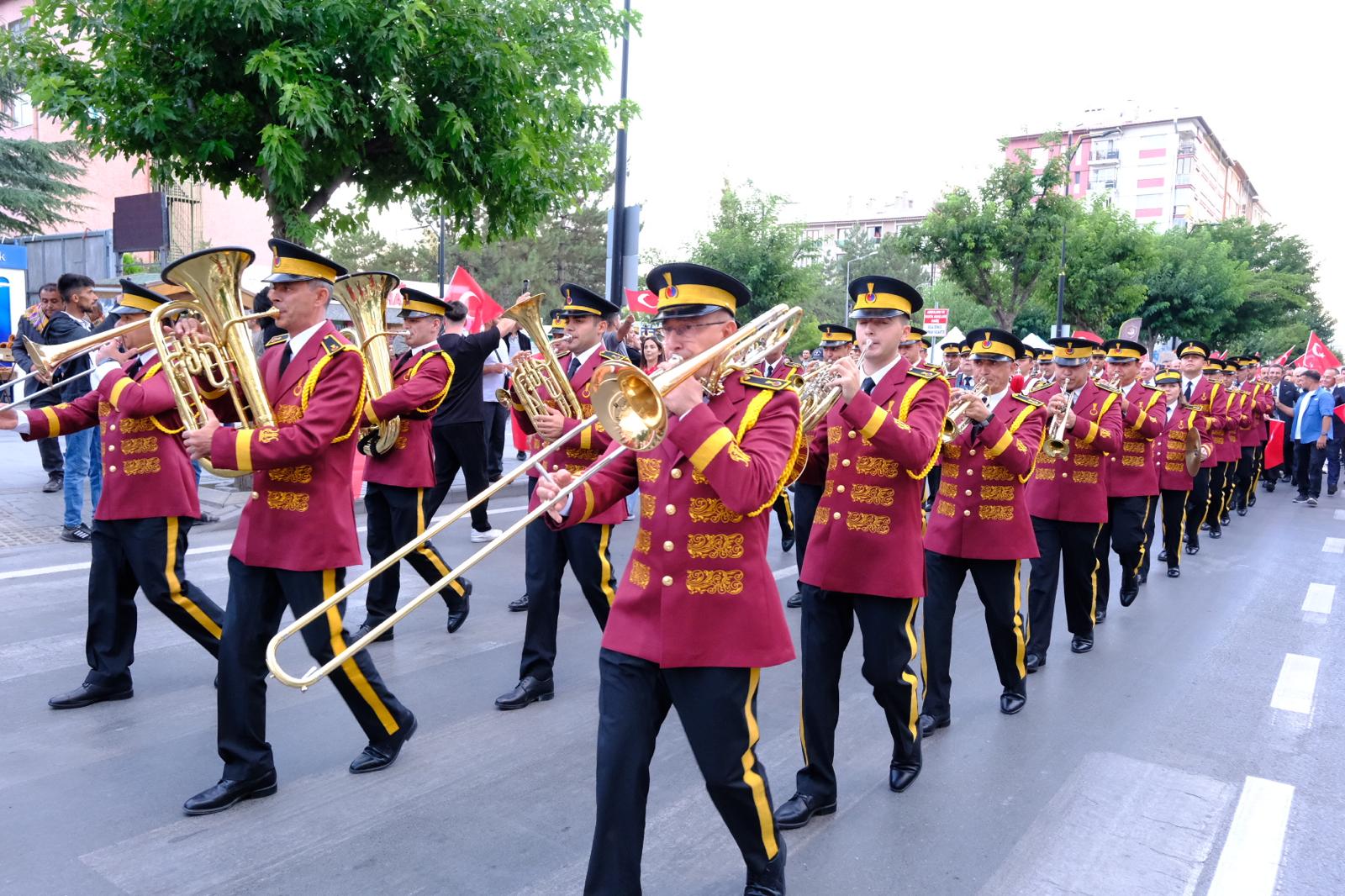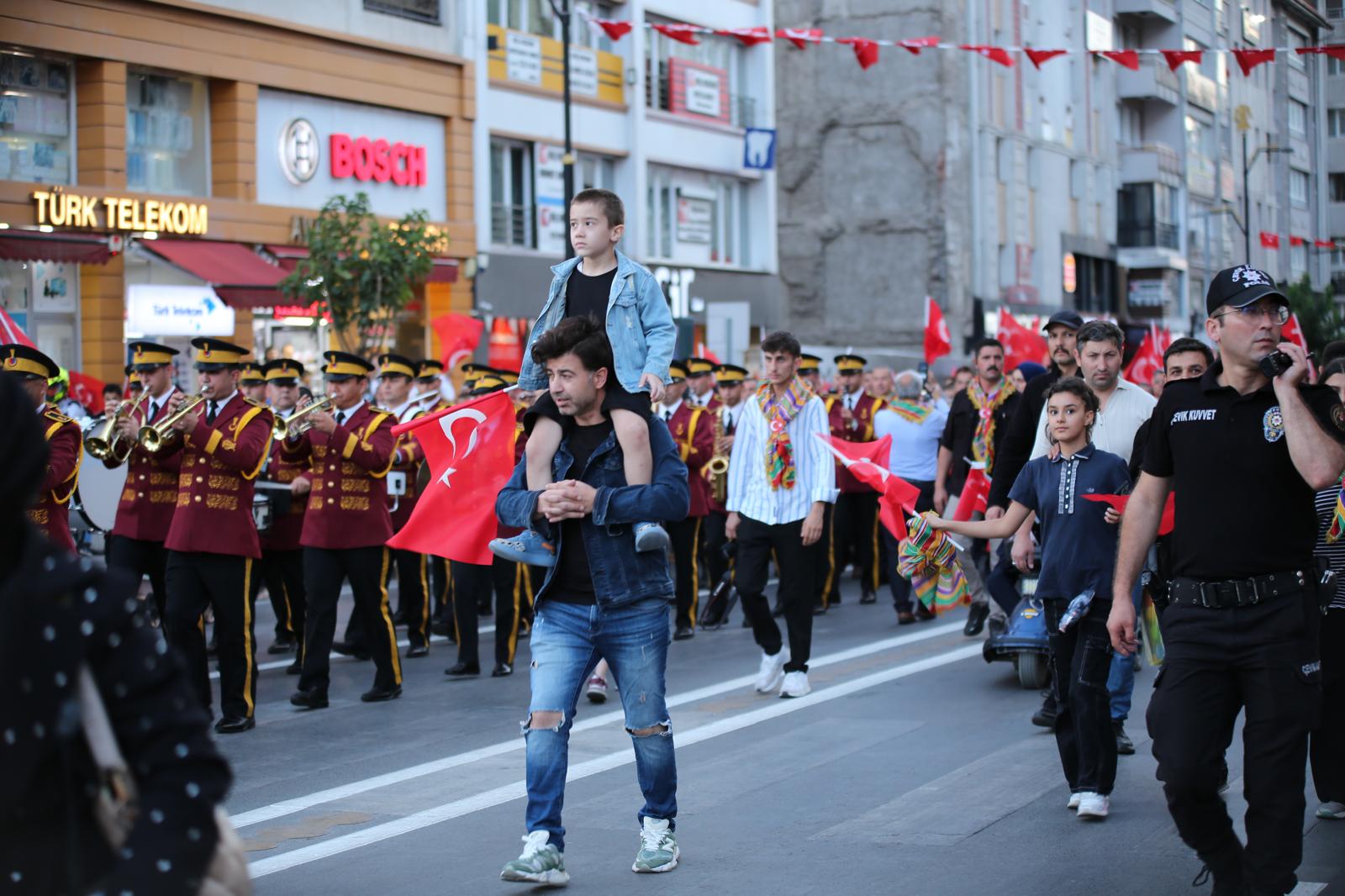 Tren Garı önünden başlayan yürüyüş, Jandarma Genel Komutanlığı Bando Takımı’nın seslendirdiği marşlarla Cumhuriyet Meydanı’na ulaştı.