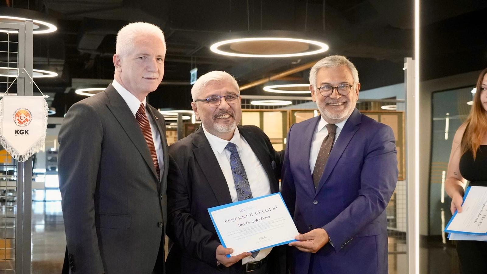Açılış töreninde konuşan İstinye Üniversitesi Rektör Yardımcısı Prof. Dr. Peyami Çelikcan, sergi sahibi Doç. Dr. Sefer Darıcı ve KGK Genel Başkanı Mehmet Ali Dim’in ardından kürsüye çıkan İstanbul Valisi Davut Gül, “Bu önemli sergiye ev sahipliği yaptıkları için Küresel Gazeteciler Konseyi’ne teşekkür ederim. Bu tür organizasyonlar İstanbul’umuza değer katıyor. Emeği geçenleri kutluyorum” dedi. Vali Gül, açılışın ardından sergiyi gezerek MedyaLab sınıfında iletişim öğrencileriyle bir araya geldi. Öğrencilere seslenen Gül, “Mesleğinizi sevin ve bilinçli bir şekilde yapmak için bu tür eğitimlerden faydalanmayı bilin” tavsiyesinde bulundu.