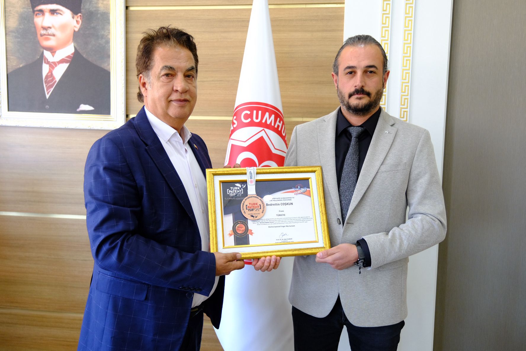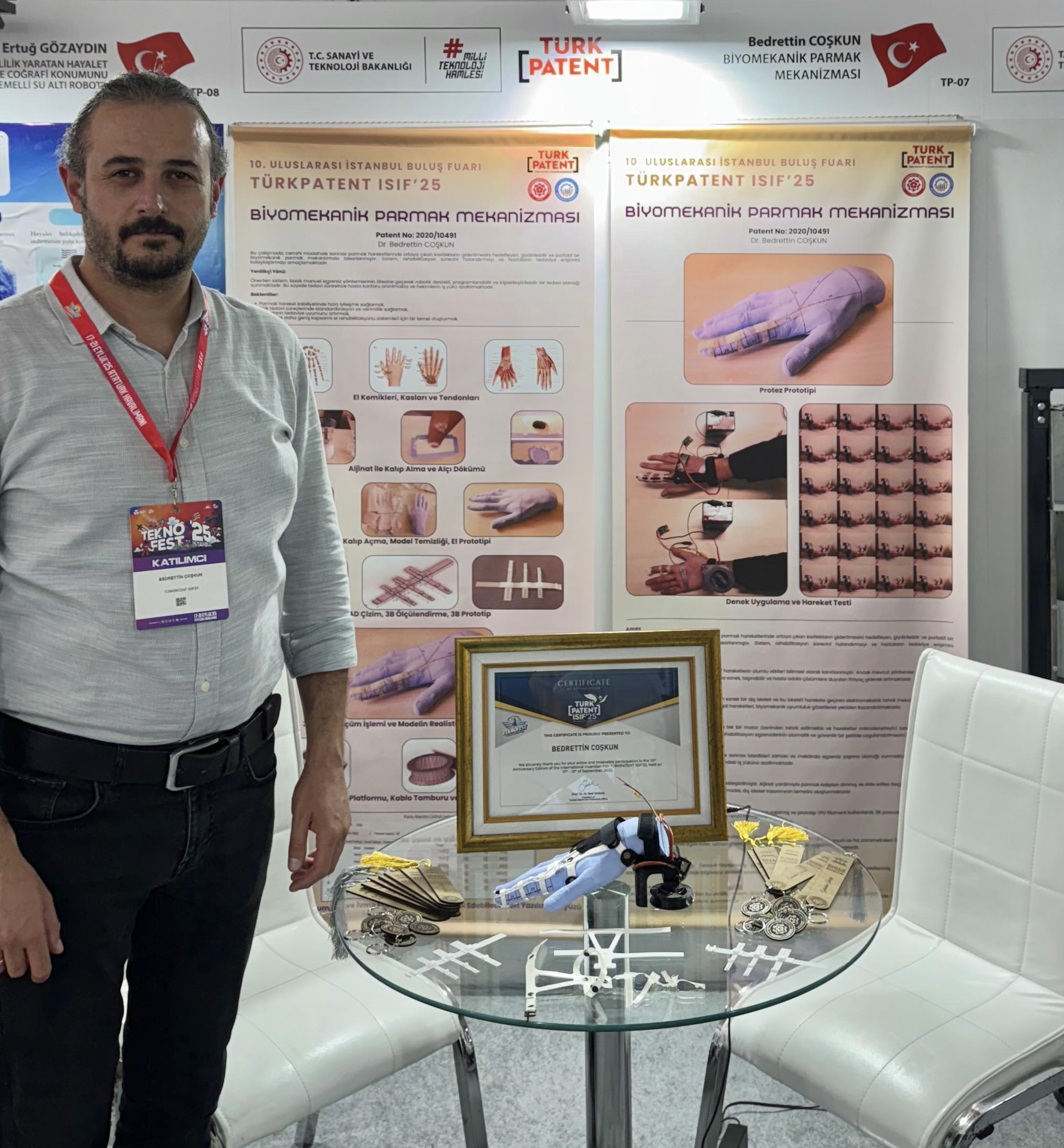 Dr. Coşkun, fuarda sergilediği “Biyomekanik Parmak Mekanizması” adlı buluşuyla Bronz Madalya ödülüne layık görülerek uluslararası alanda önemli bir başarı elde etti. Dr. Coşkun, desteklerinden dolayı Rektörümüz Prof. Dr. Ahmet Şengönül’e teşekkürlerini iletti.