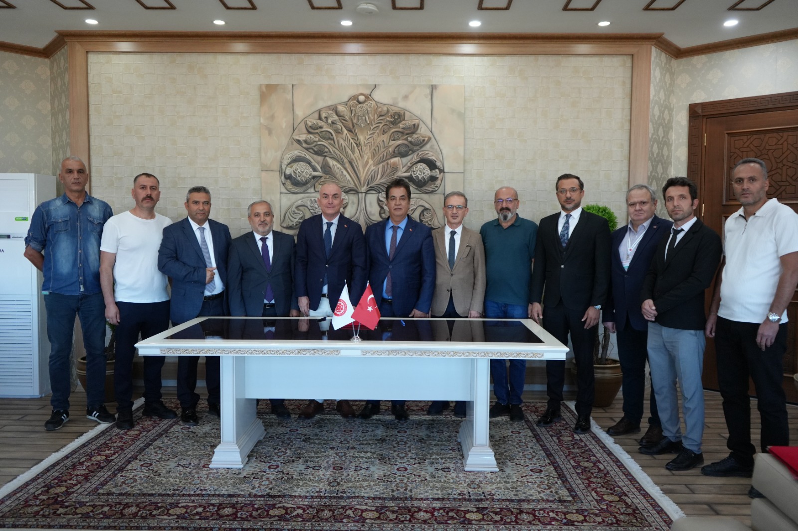 Rektörümüz Prof. Dr. Ahmet Şengönül, Öz Sağlık-İş Sendikası Sivas Şube Başkanı İbrahim Eyce ve beraberindeki heyeti makamında kabul etti.