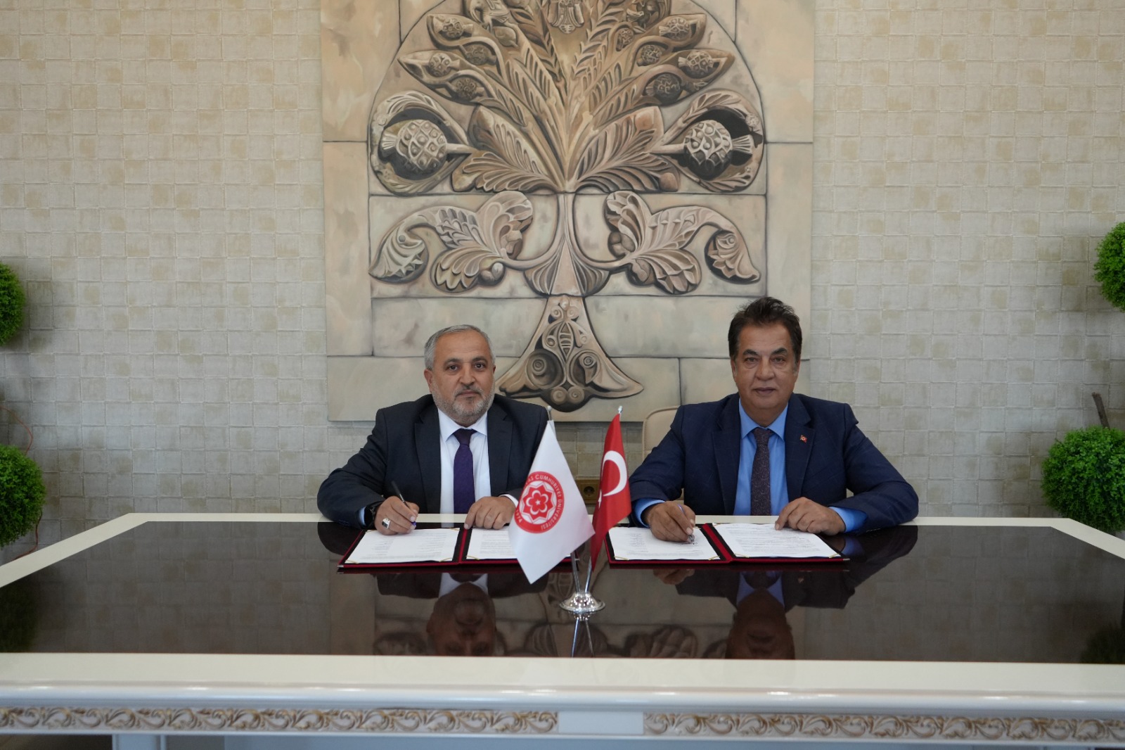 Gerçekleştirilen görüşmede, Üniversitemiz ile Öz Sağlık-İş Sendikası arasında toplu iş sözleşmesine yönelik ek protokol imzalandı. Protokole, Rektörümüz Prof. Dr. Ahmet Şengönül ile Şube Başkanı İbrahim Eyce imza attı.