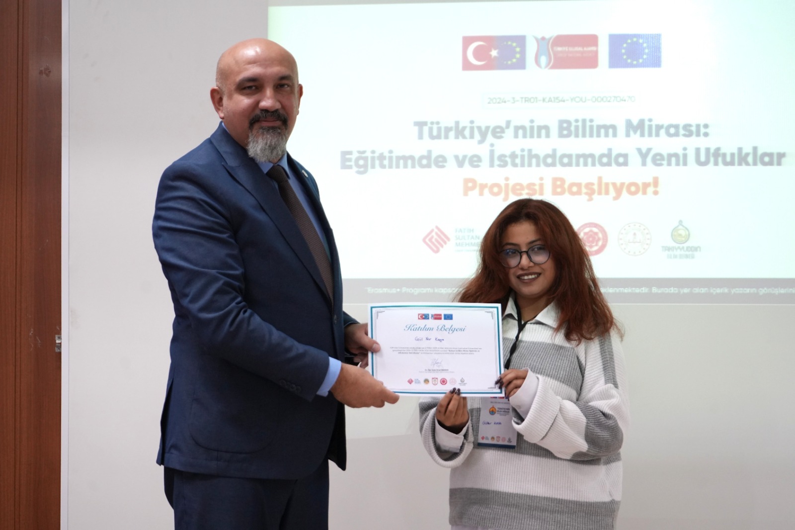 Erasmus+ KA154-YOU Gençlik Programı kapsamında Fatih Sultan Mehmet Vakıf Üniversitesi Prof. Dr. Fuat Sezgin İslam Bilim Tarihi Enstitüsü tarafından hazırlanan, Sivas Valiliği ortaklığı ve Sivas Cumhuriyet Üniversitesi iş birliği ile yürütülen “Türkiye’nin Bilim Mirası: Eğitimde ve İstihdamda Yeni Ufuklar” isimli projenin kapanış ve sertifika töreni Sivas Cumhuriyet Üniversitesi 100. Yıl Kültür Merkezi’nde düzenlendi.