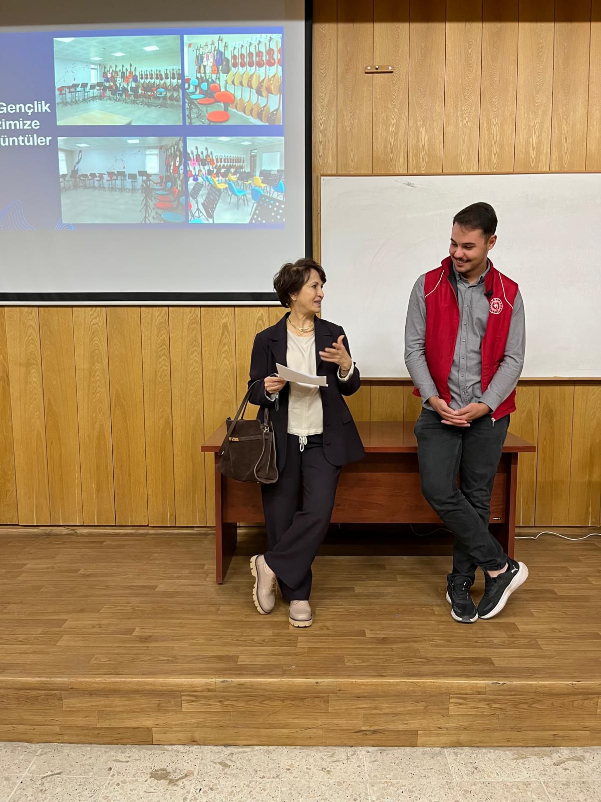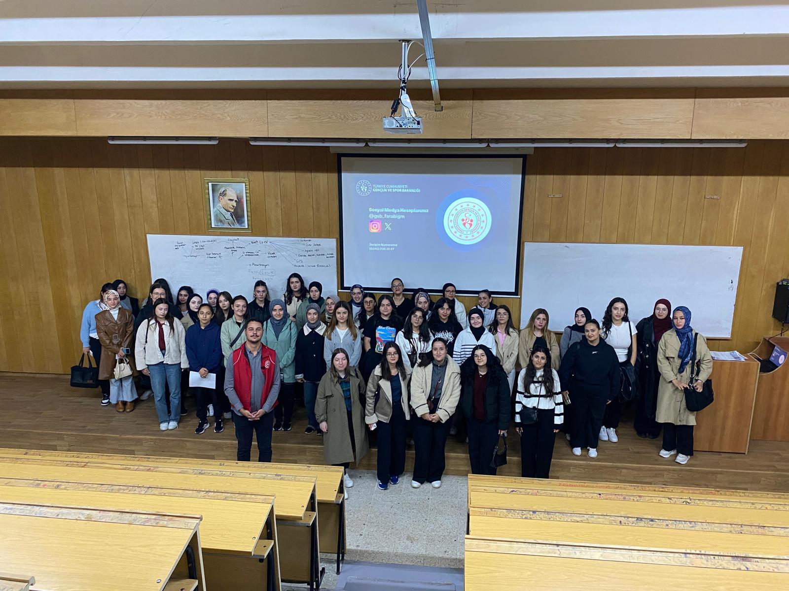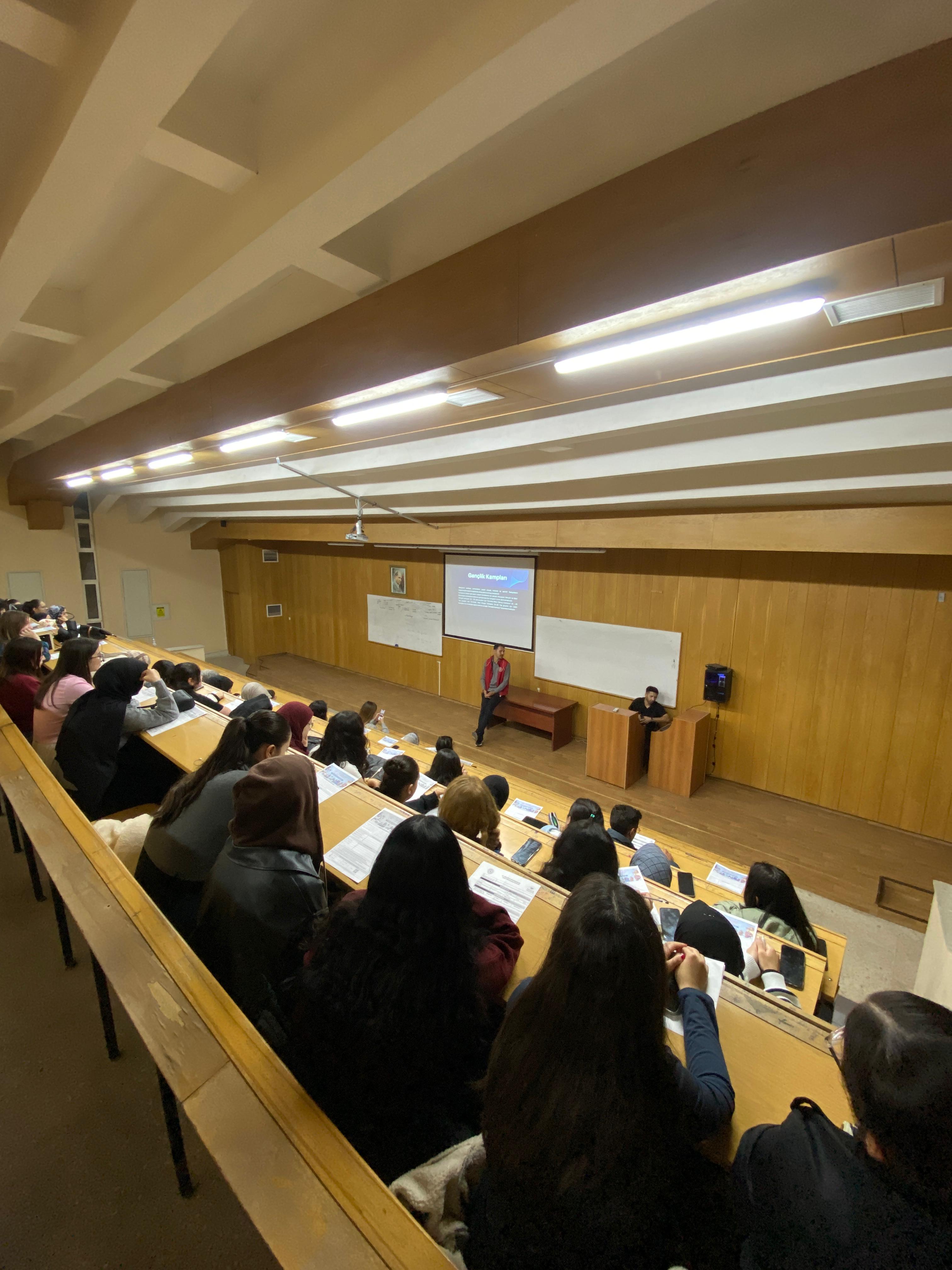 Etkinlik, fakültenin Merkezi Amfisi’nde gerçekleştirildi. Tanıtımda, Farabi Gençlik Merkezi’nin gençlere sunduğu sosyal, kültürel ve gönüllülük olanakları hakkında detaylı bilgiler paylaşıldı. Merkezin yürüttüğü projeler, gençlerin kişisel gelişimine katkı sağlayan faaliyetler ve gönüllü olma süreçleri öğrencilere aktarıldı.