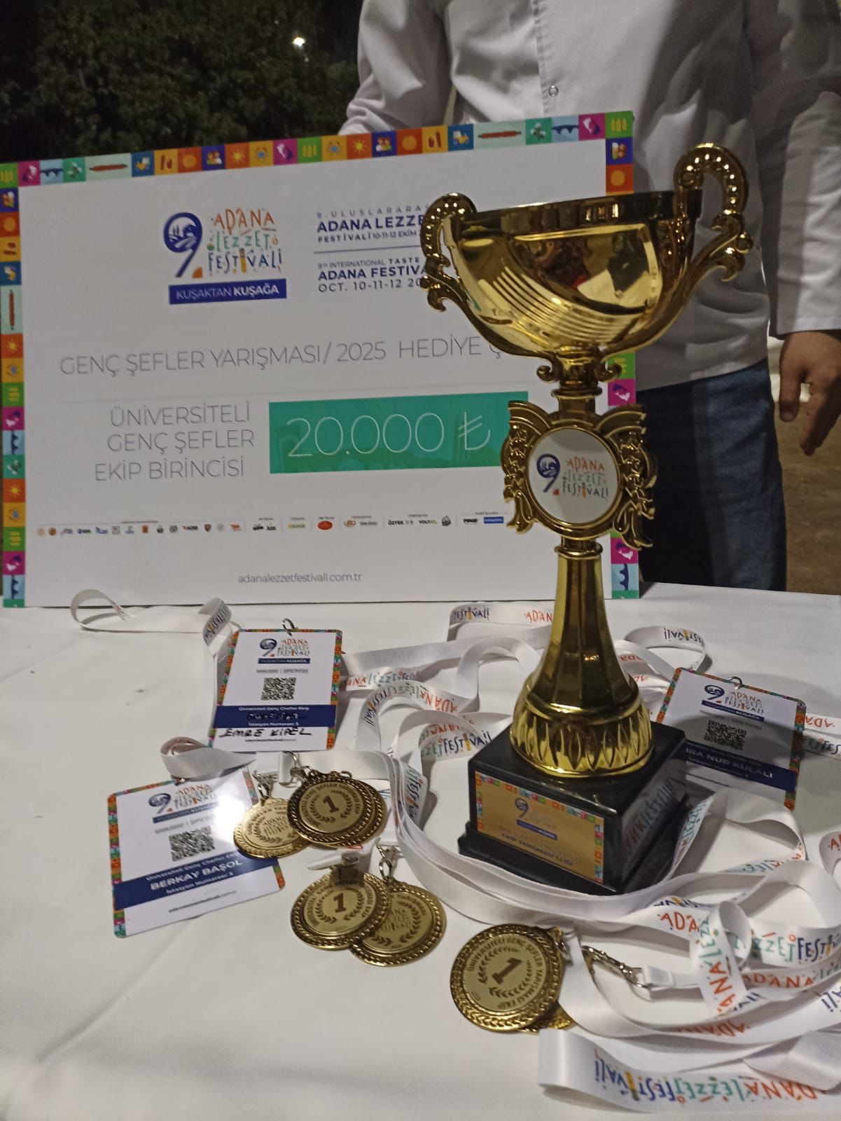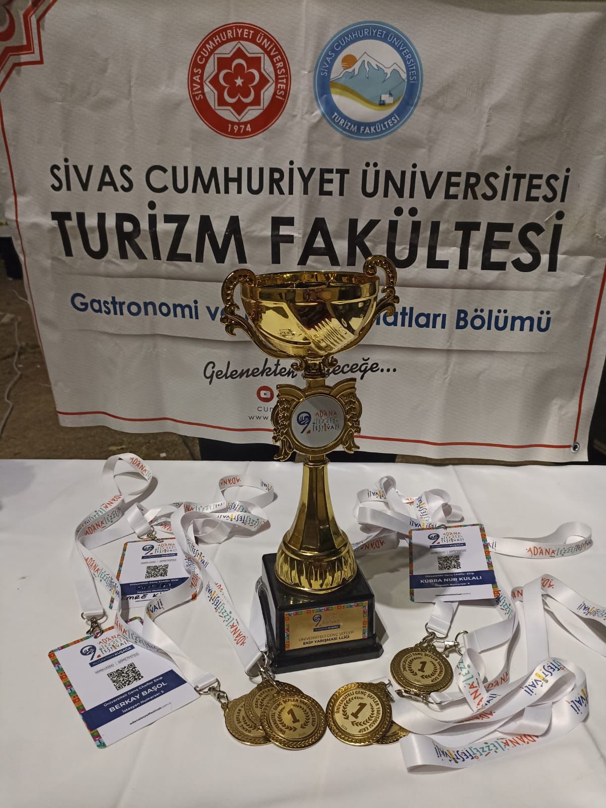 Sivas Cumhuriyet Üniversitesi Turizm Fakültesi Gastronomi ve Mutfak Sanatları Bölümü öğrencileri, 9. Uluslararası Adana Lezzet Festivali kapsamında “Kuşaktan Kuşağa” temasıyla düzenlenen Üniversiteli Genç Şefler Ekip Yarışması’nda birincilik elde ederek altın madalya kazandı.