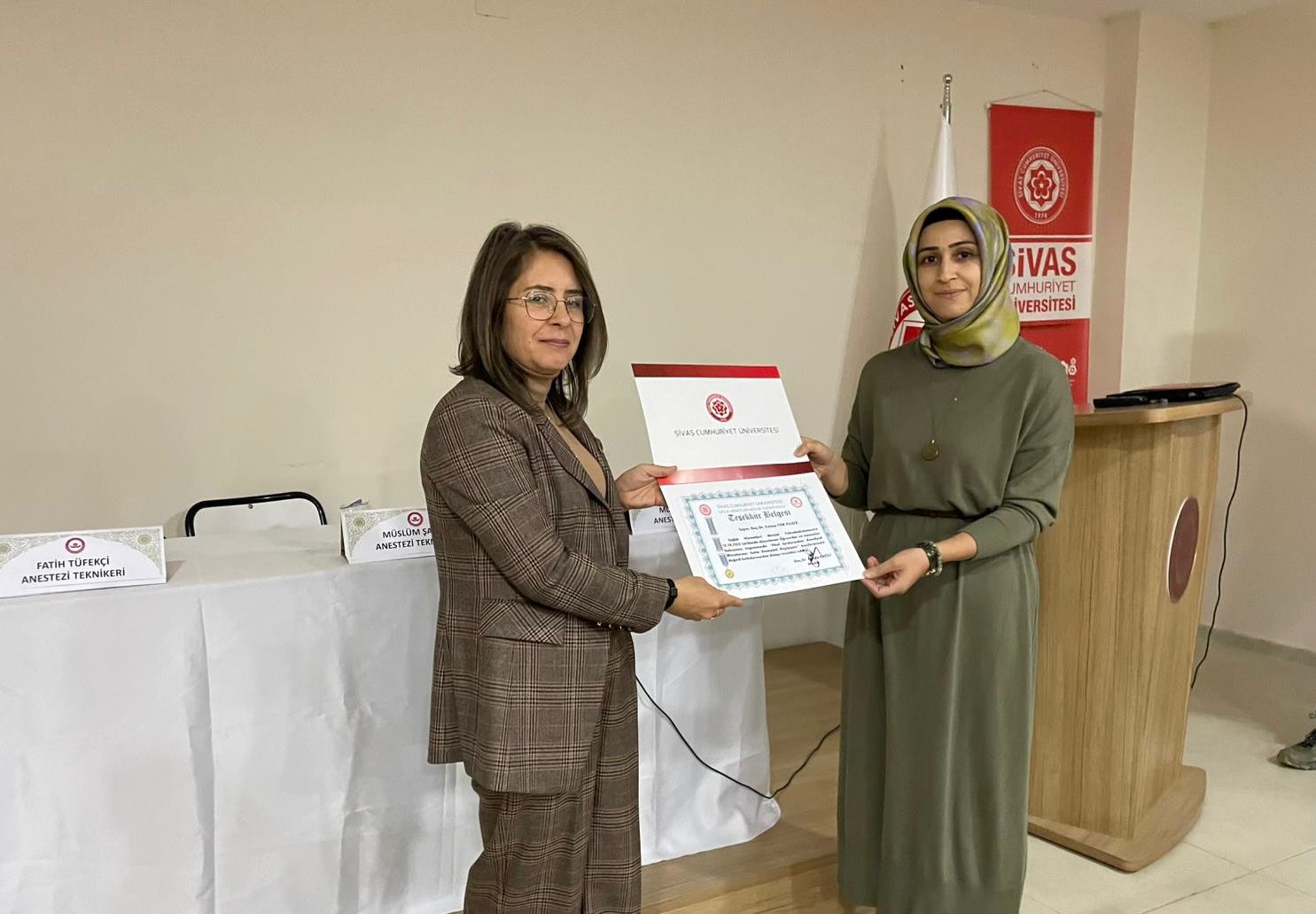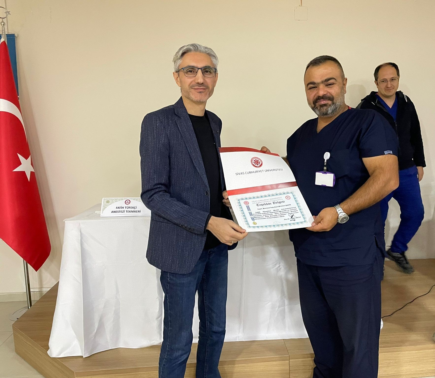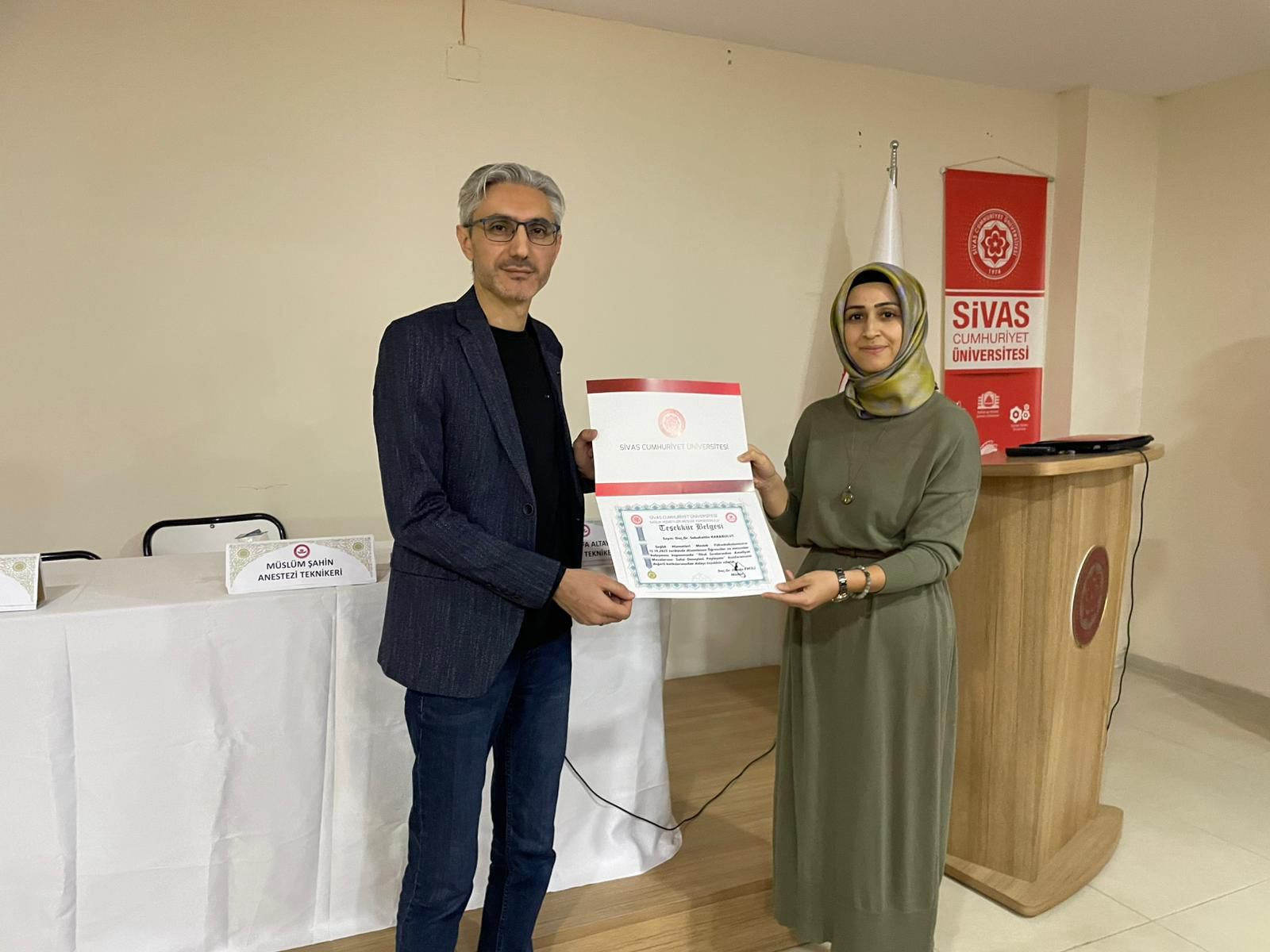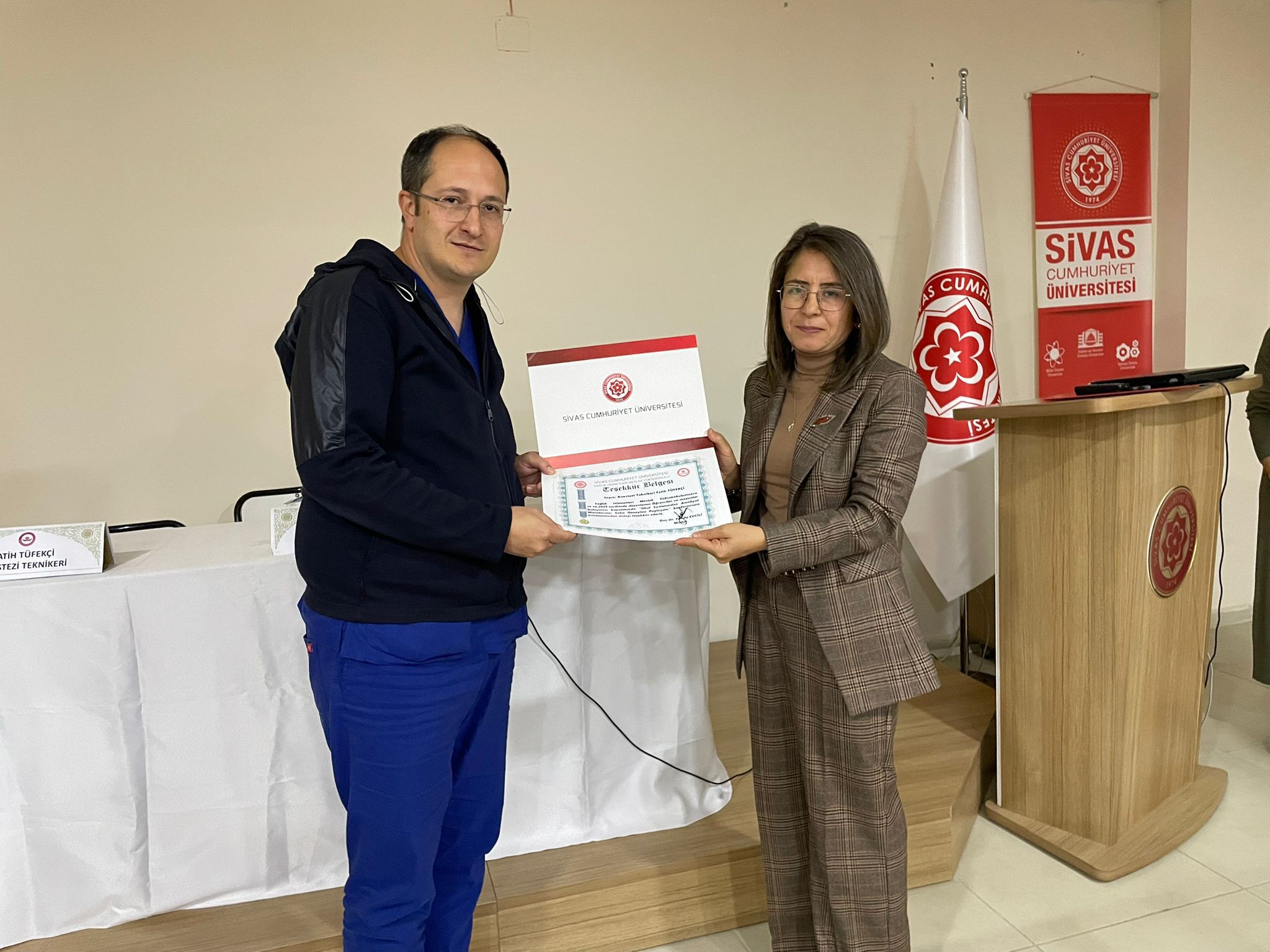 Etkinlikte anestezi teknikerleri Fatih Tüfekçi, Müslüm Şahin ve Mustafa Altay, bilgi ve tecrübelerini katılımcılarla paylaştı. Etkinlik sonunda konuşmacılara teşekkür belgeleri takdim edildi.