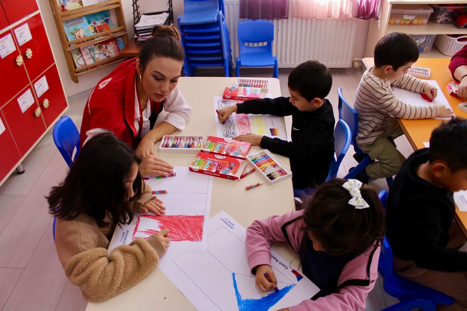 Etkinlikte, Avrupa’nın farklı ülkelerinin hikayeleri ve müzikleri tanıtılarak çocuklarda kültürel farkındalık oluşturulması hedeflendi. İletişim Kulübü öğrencilerinin de katılımıyla renklenen etkinlik, keyifli anlara sahne oldu.
