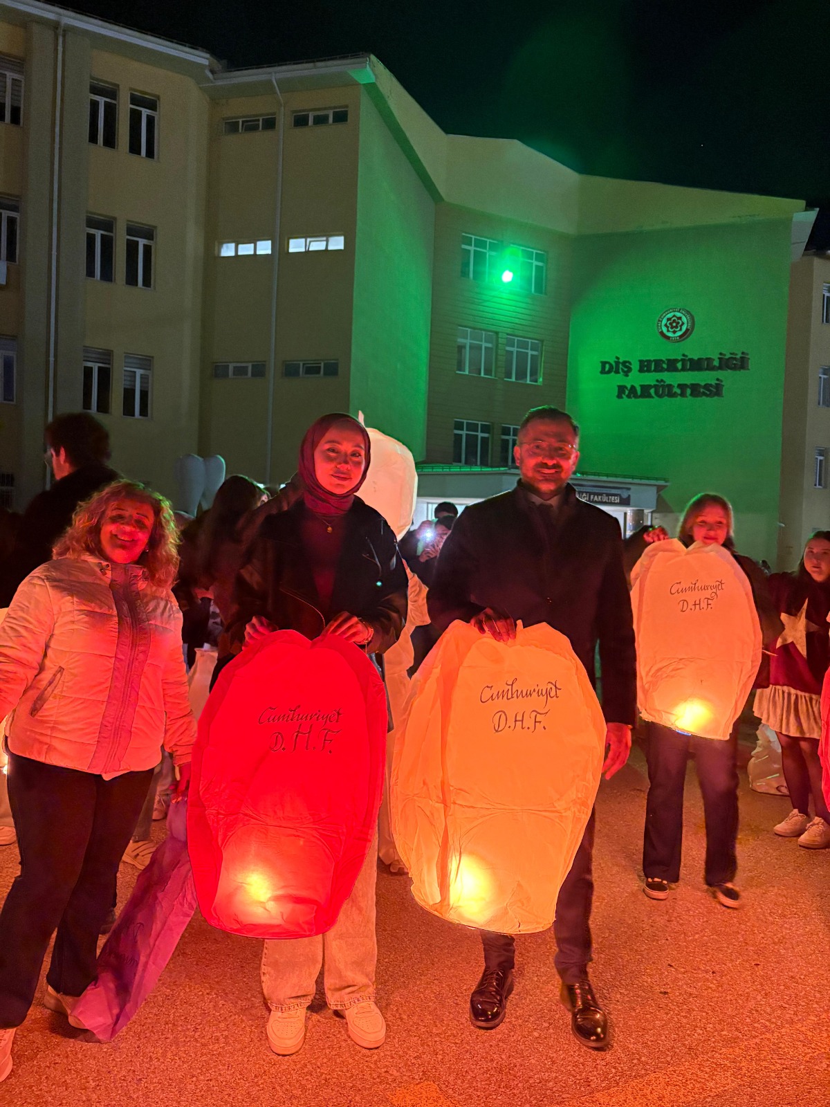 Oryantasyon programının ikinci gününde, Diş Hekimliği Fakültesi Yerleşkesi’nde açık hava etkinlikleri düzenlendi. Müzikli eğlencelerin yanı sıra halat çekme, badminton turnuvası ve minyatür kale futbolu gibi çeşitli spor aktiviteleriyle öğrenciler hem eğlendi hem de birbirleriyle kaynaşma fırsatı buldu. Gün, dilek balonlarının gökyüzüne bırakılmasıyla sona erdi.