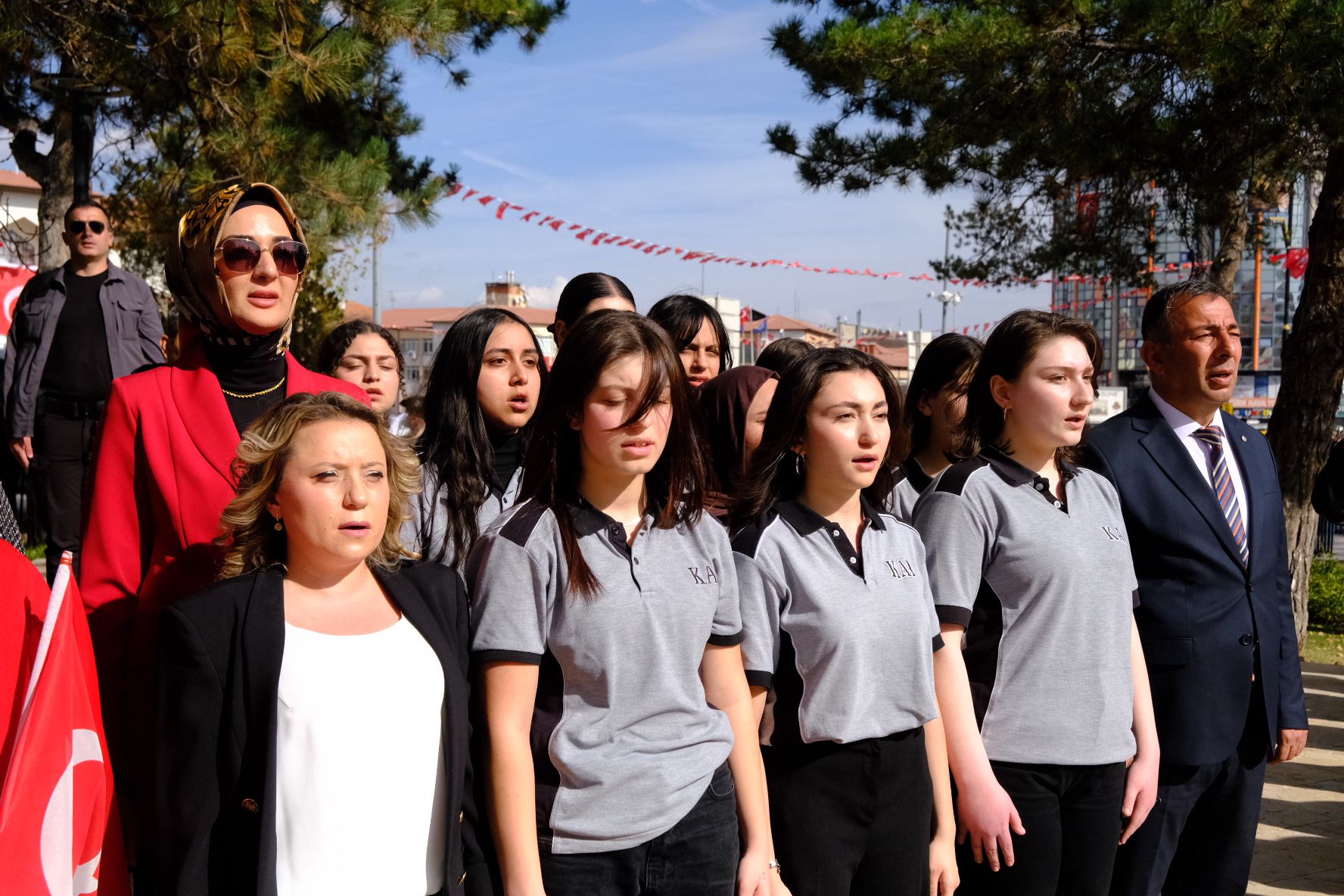 Atatürk Anıtı’na çelenk sunulmasının ardından saygı duruşunda bulunuldu ve İstiklal Marşı’nın okunmasıyla tören sona erdi.